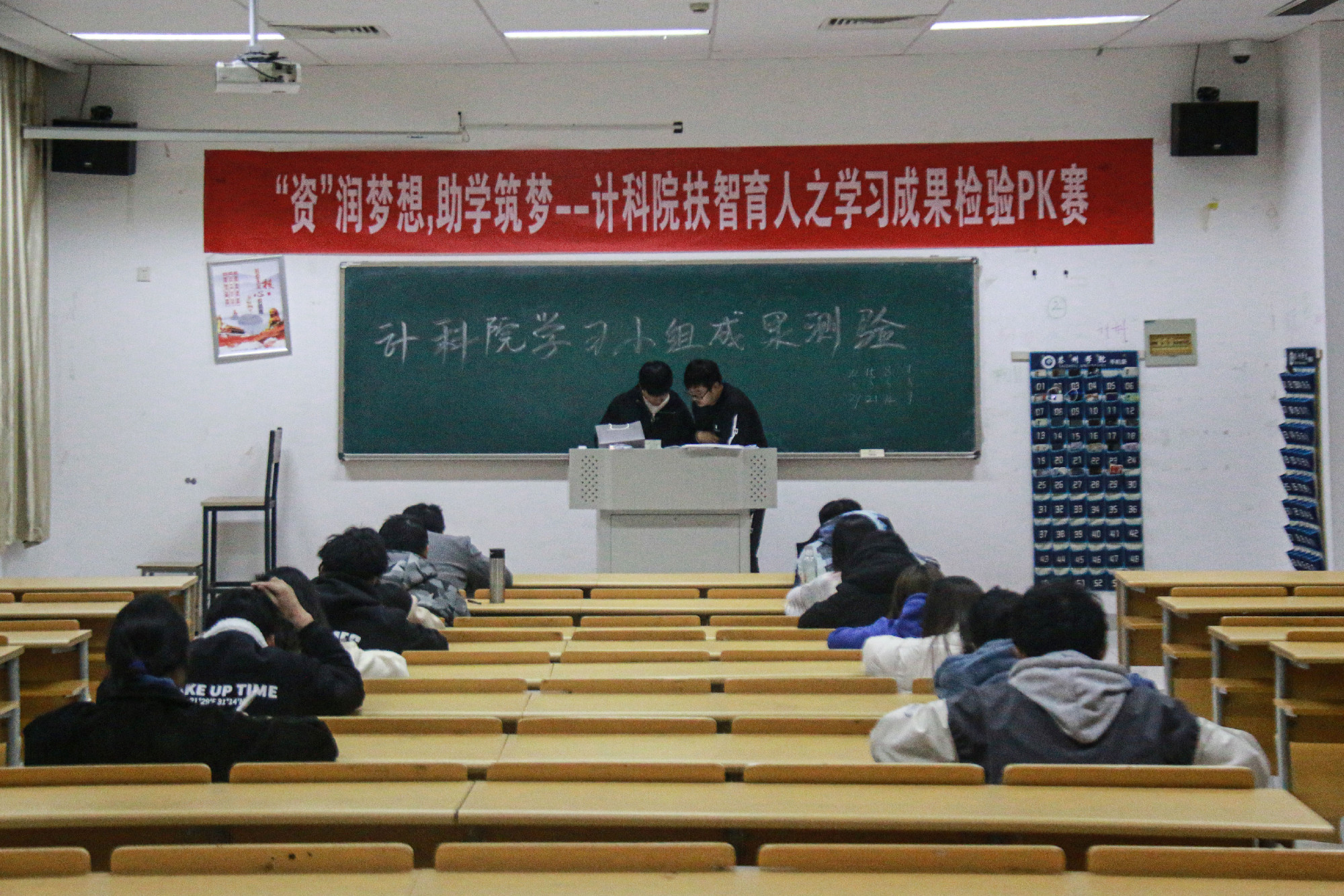 为扎实推进立德树人根本任务,帮助家庭经济困难学生提升学习能力、实践能力,11月28日晚,计算机科学与技术学院在教学楼3407开展了“资”润梦想、助学筑梦——扶智育人之学习成果检验PK赛活动。