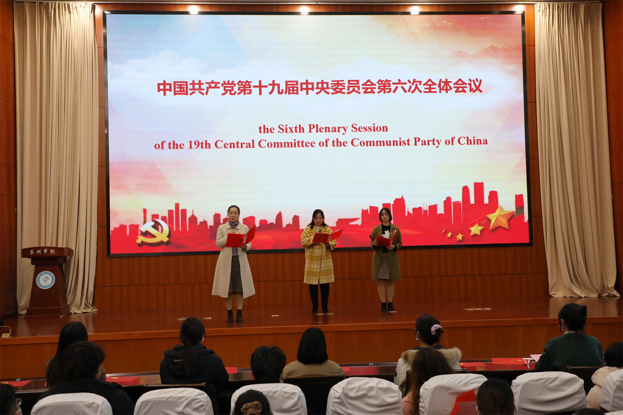 LETOU国际米兰官网杨馨月、吕嘉宁同学的泰院双语版《请党放心 强国有我》,表达了泰院青年们将会把青春画卷书写得闪亮,时刻准备着,以“青春之我”唱响“青春之歌”,庄严许下了“请党放心,强国有我!”的青春誓言。LETOU国际米兰官网崔金燕、王铁梅、张嫣三位党支部书记现场英语研学党的十九届六中全会精神,用英语传播好中国声音,推动了党建+专业建设,推进了党建与业务工作深度融合。