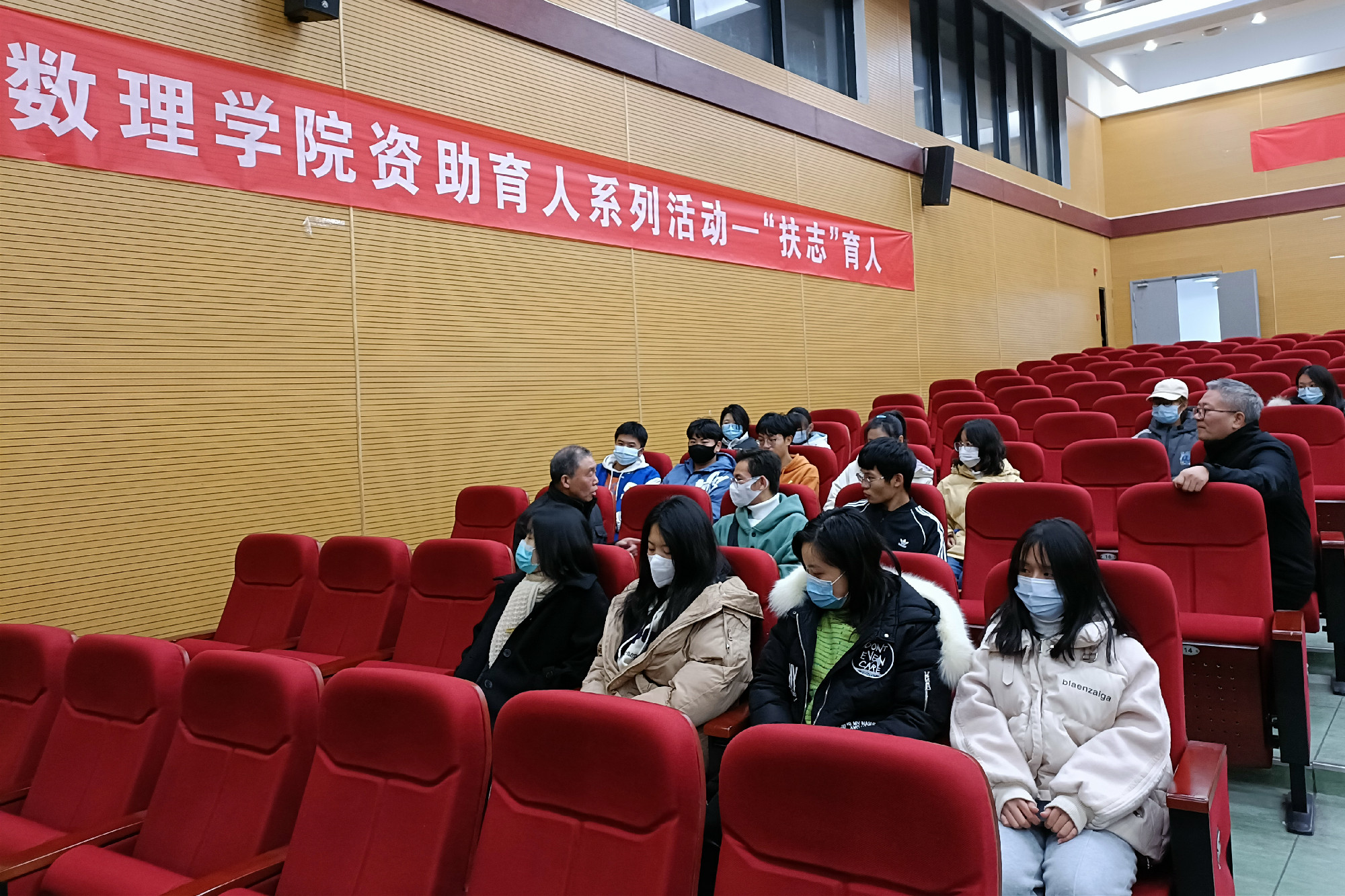 为坚定学生专业志向,强化专业情感,12月2日,数理学院在图书馆负一楼报告厅开展“扶志”育人活动。江苏省泰州市阳光心理服务中心理事、心理学专家李如齐,数理学院党总支书记杨俊林以及学院辅导员参加本次活动。