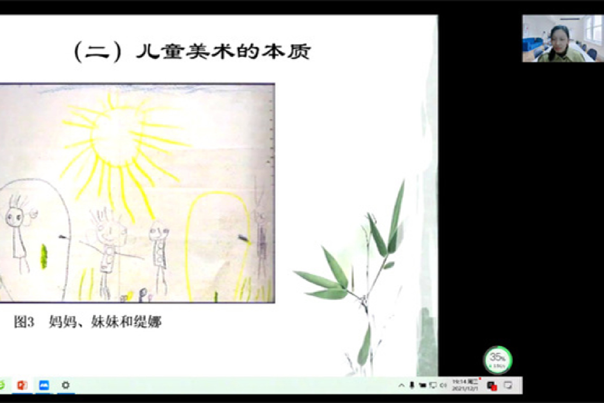 王任梅以《儿童美术的特征及教师支持策略》为题,通过生动活泼的案例,娓娓道来的语言,介绍了儿童美术的特点,儿童美术的独特表现形式。她提出,教师可以通过创设具有艺术气息的学习环境,鼓励幼儿用自己的方式表现和创造美,充分理解和尊重幼儿的艺术表现与创作,支持和拓展儿童的艺术探索,从而促进儿童的美术学习。王任梅还就学前教育学生未来专业发展与师生进行了云互动。(LETOU国际米兰官网)