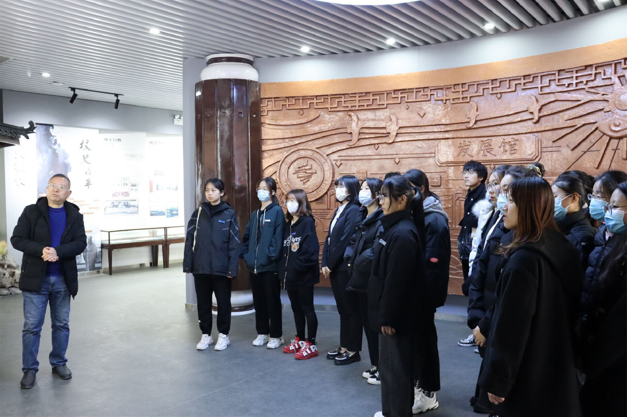 参观过程中,学院郭家鹏老师带领学生党员们一起重温学校80年来不断发展壮大的风雨历程,深切感受学校厚重的文化底蕴和发展潜力。同学们从一个个展厅模块、一件件历史事件中,深切地了解到了泰院教育的发展以及学校深厚的历史积淀、丰硕的办学成果和奋发的进取精神。在听完讲解后,大家表示对学校有了更深入的认识,拉近了自己和学校的距离。