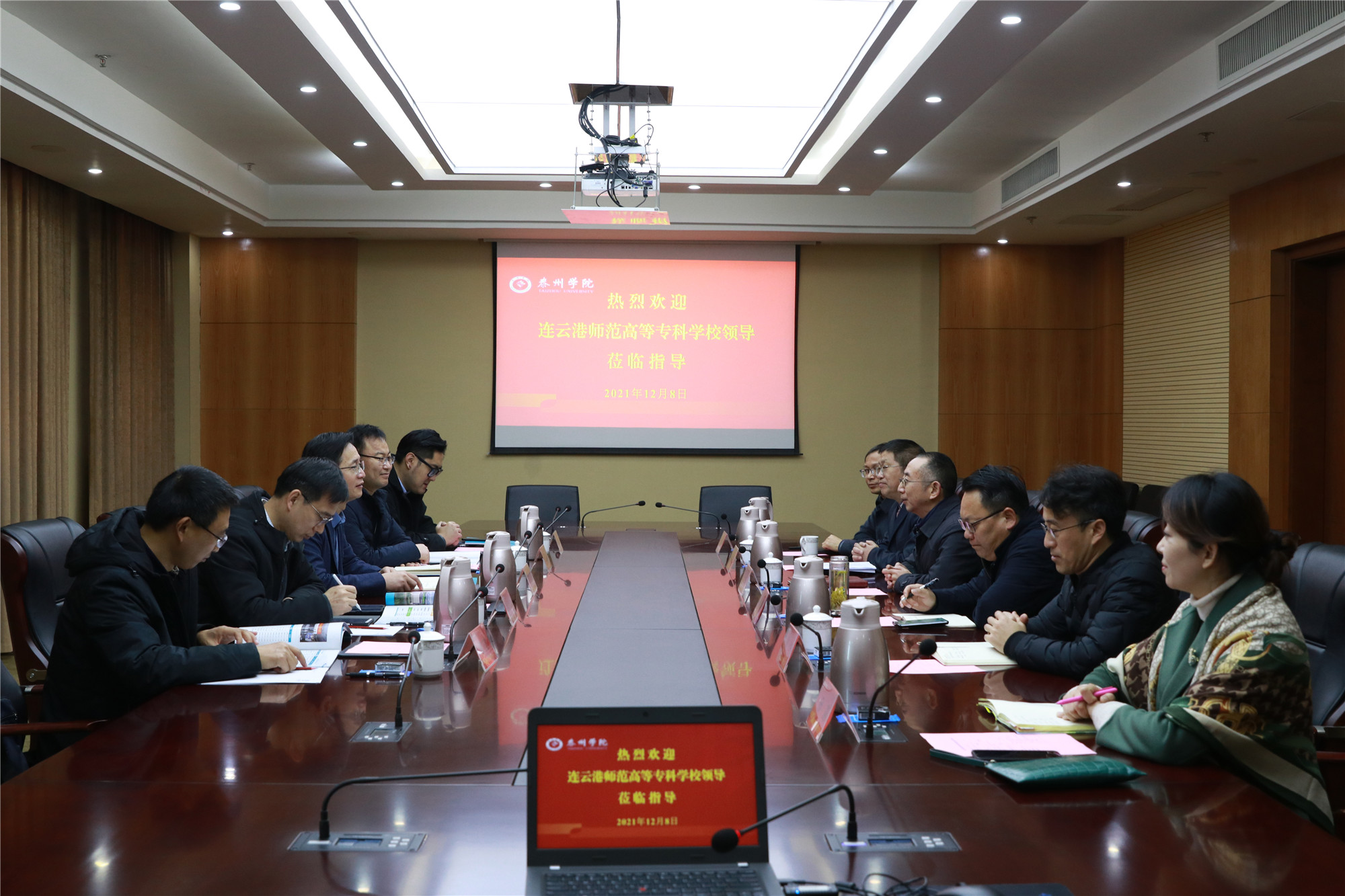 12月8日上午,连云港师范高等专科学校副校长丁红星一行5人来米兰官网调研。米兰官网党委副书记、副校长王美林接待来宾,办公室、教务处、教育教学评估中心、国有资产管理处、团委等部门负责同志参加交流。