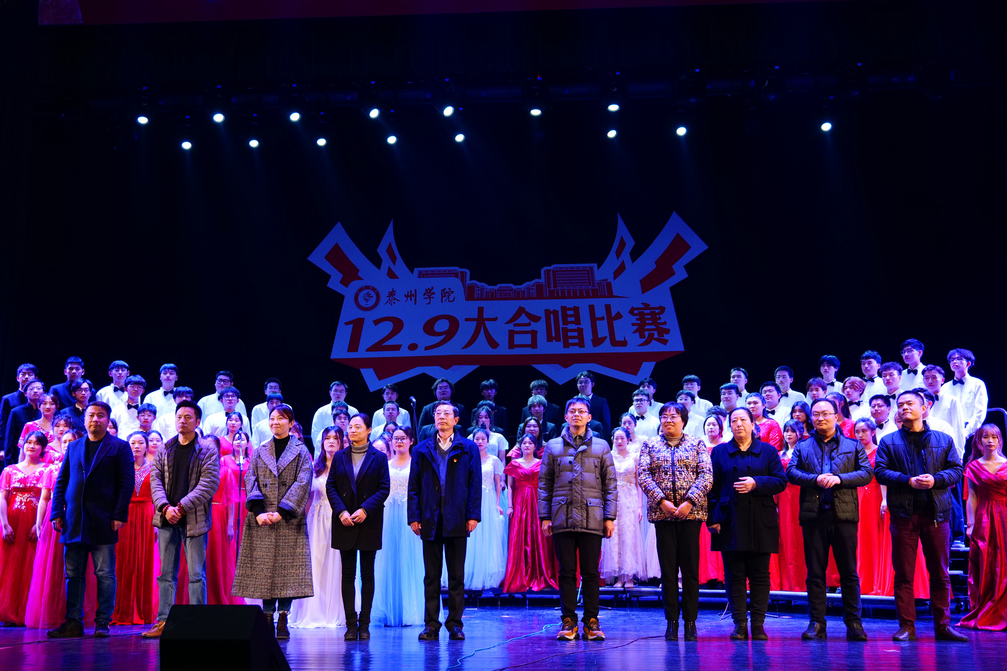 12月9日晚,米兰官网第九届大学生科技文化艺术节纪念“12•9”大合唱比赛在大学生活动中心剧场举办。比赛由校团委主办,校学生会承办,全校10支参赛队近600人参加了比赛。校党委副书记邓友祥,宣传部、学工处、图书馆、团委等部门领导,各二级学院党总支副书记及团学工作负责人到场观看。