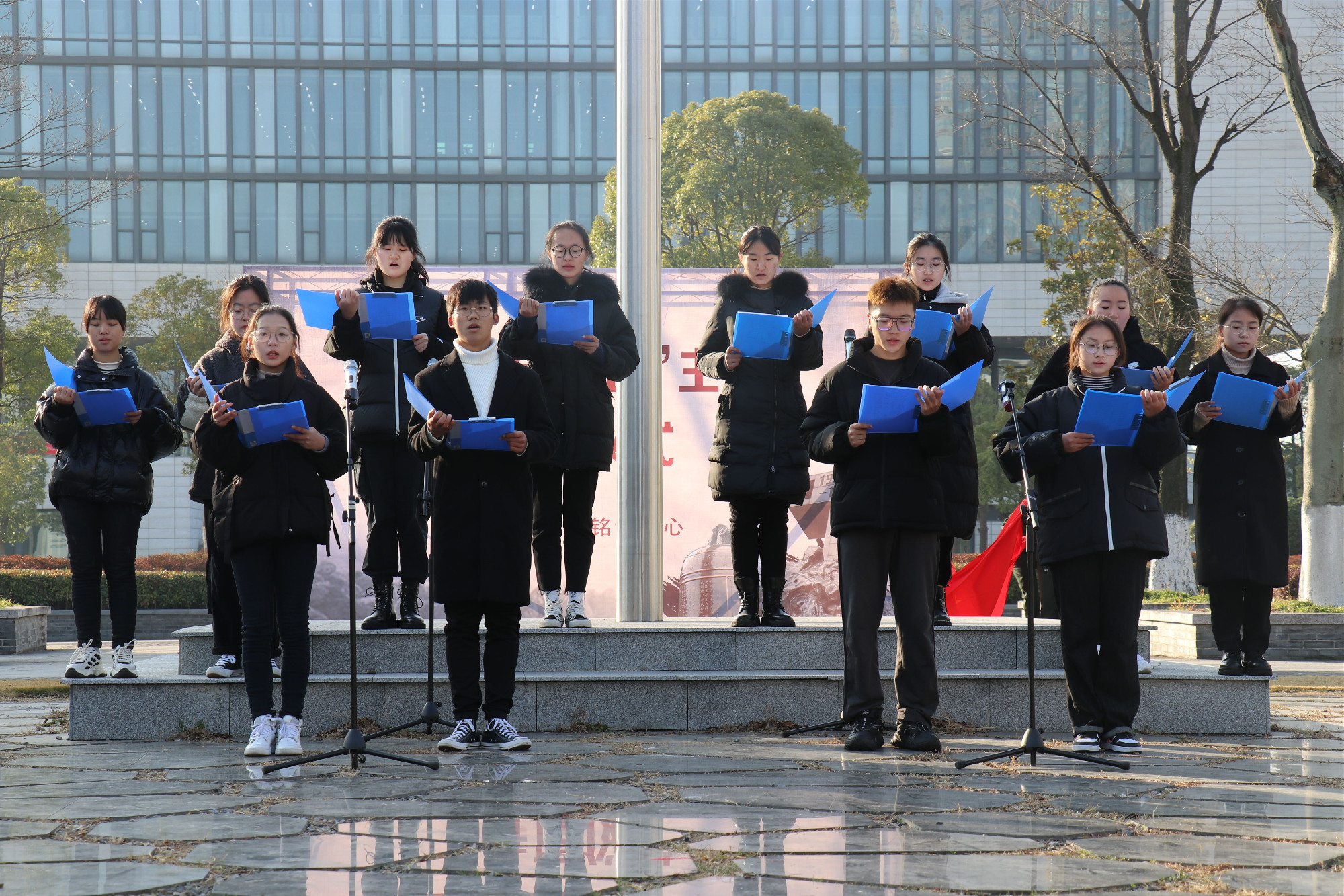 回顾历史,让我们更加珍惜和平、珍惜当下,“和平当属来之不易,我们生于一个和平的时代,一个和平的国家,是因为有着无数的人在为我们负重前行,我们更应珍惜和平,守护这份和平。”诗朗诵《和平宣言》的铿锵之声在胡瑗广场上空飘荡。