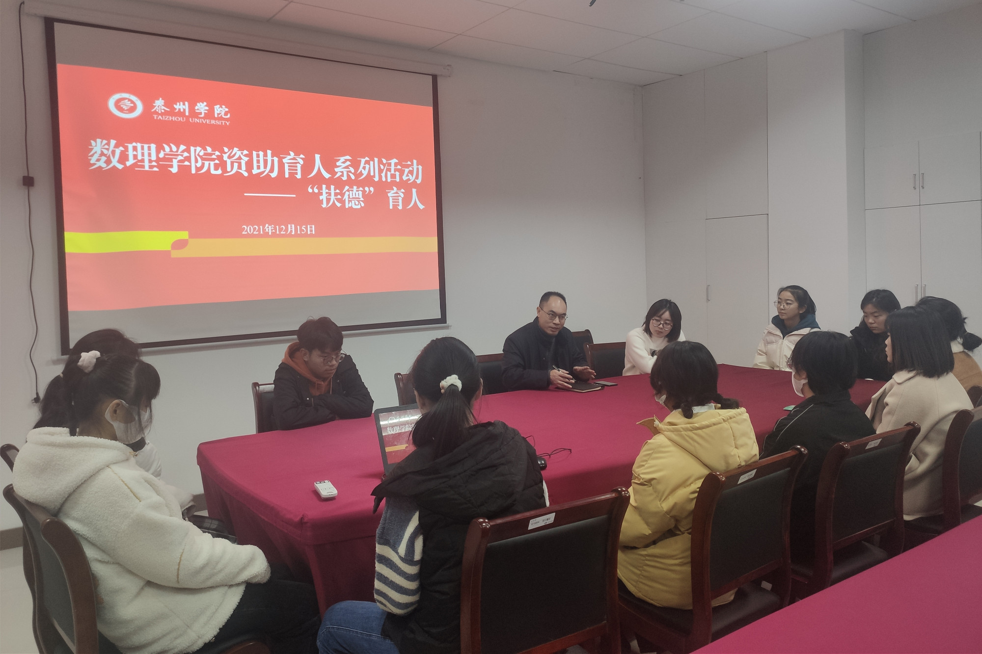 12月15日下午,数理学院在行政楼D1321开展“‘扶德’育人”活动,院党总支副书记吴小荣,辅导员赵洁以及学院部分志愿者参加本次活动。