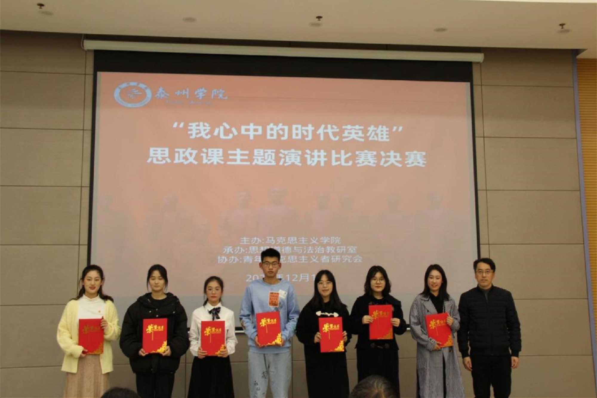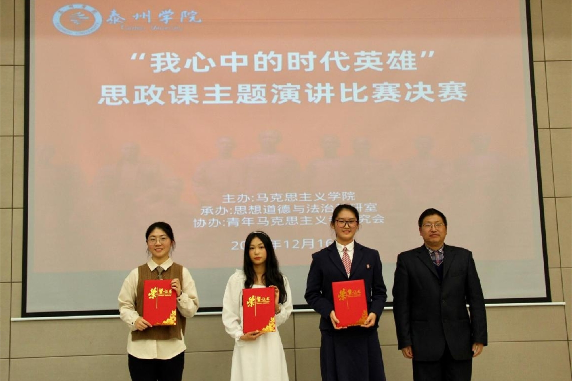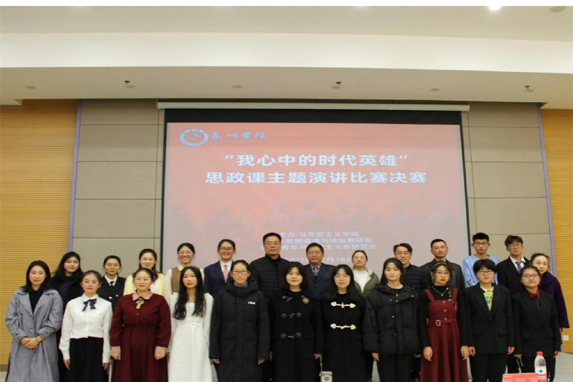 12月16日下午,马克思主义学院举办“我心中的时代英雄”思政课主题演讲比赛决赛。学校相关专家领导出席活动并担任评委,2021级本科生代表观摩比赛。
