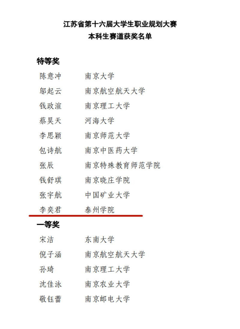 江苏省大学生职业规划大赛是全省高校大学生职业规划的最高赛事,被省教育厅认定为全省普通高校本专科生学科竞赛省级赛事,迄今为止已举办十六届。本次大赛自今年4月份启动,全省共有140多所院校、20余万人参赛,10月份各高校共推荐近四百名选手参加省级复赛。通过专家评审,南京大学等30所本科高校推荐的37名选手晋级总决赛本科生赛道,最终10名选手获特等奖。