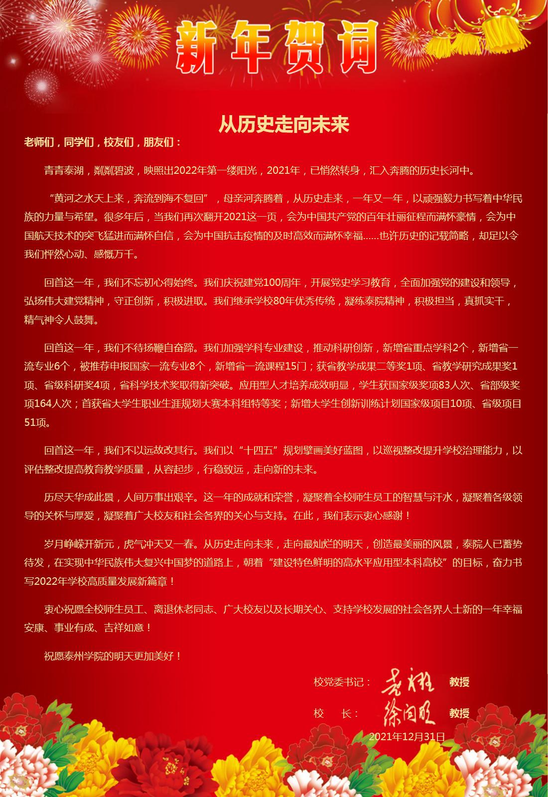 从历史走向未来——校党委书记赵茂程、校长徐向明2022年《新年贺词》