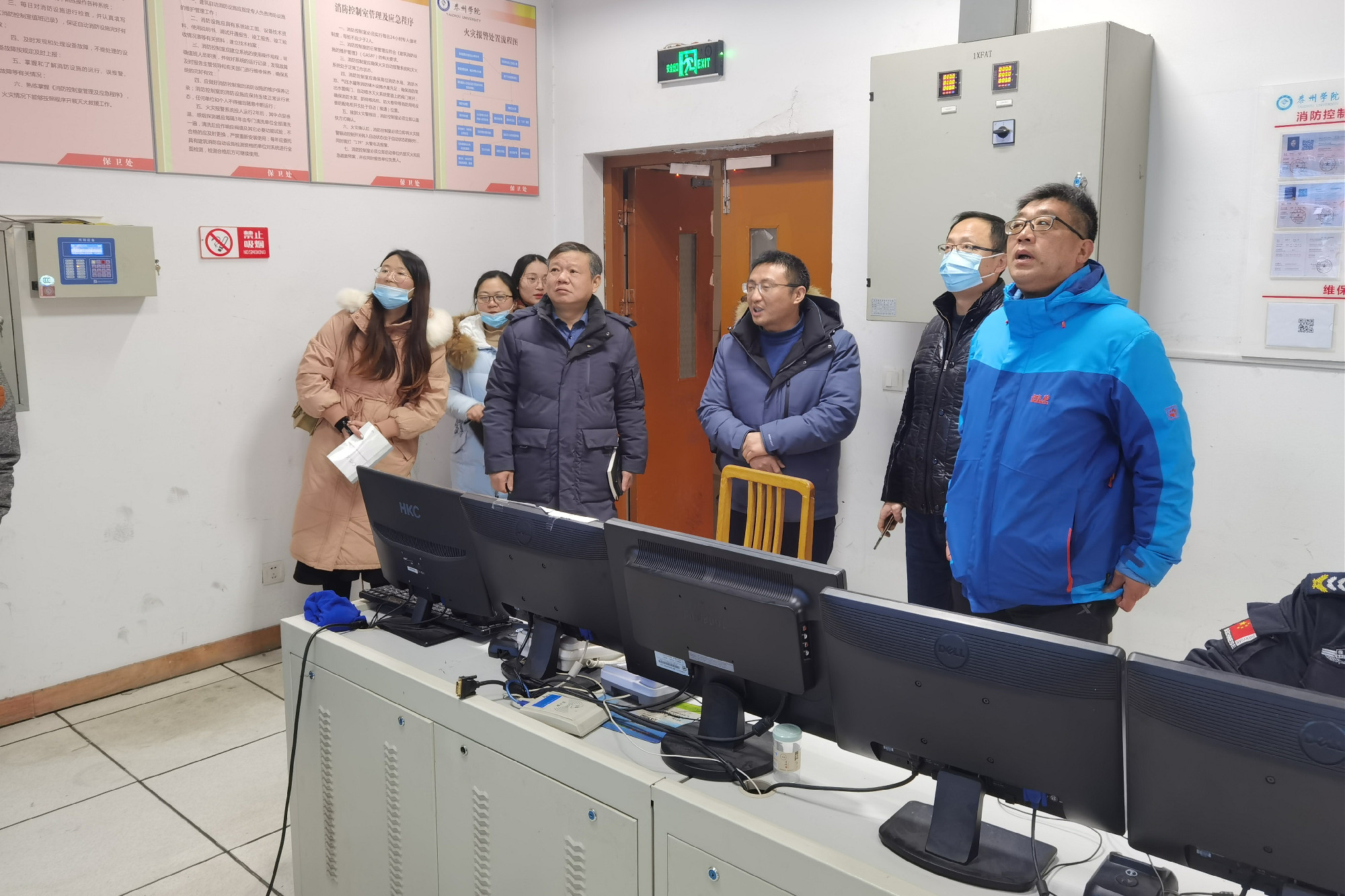 检查组检查了行政楼监控室、财务处、医药与化学化工学院办公室、危化品库房和实验室、图书馆中心机房、教学楼地下泵房和学生宿舍等重点位置。