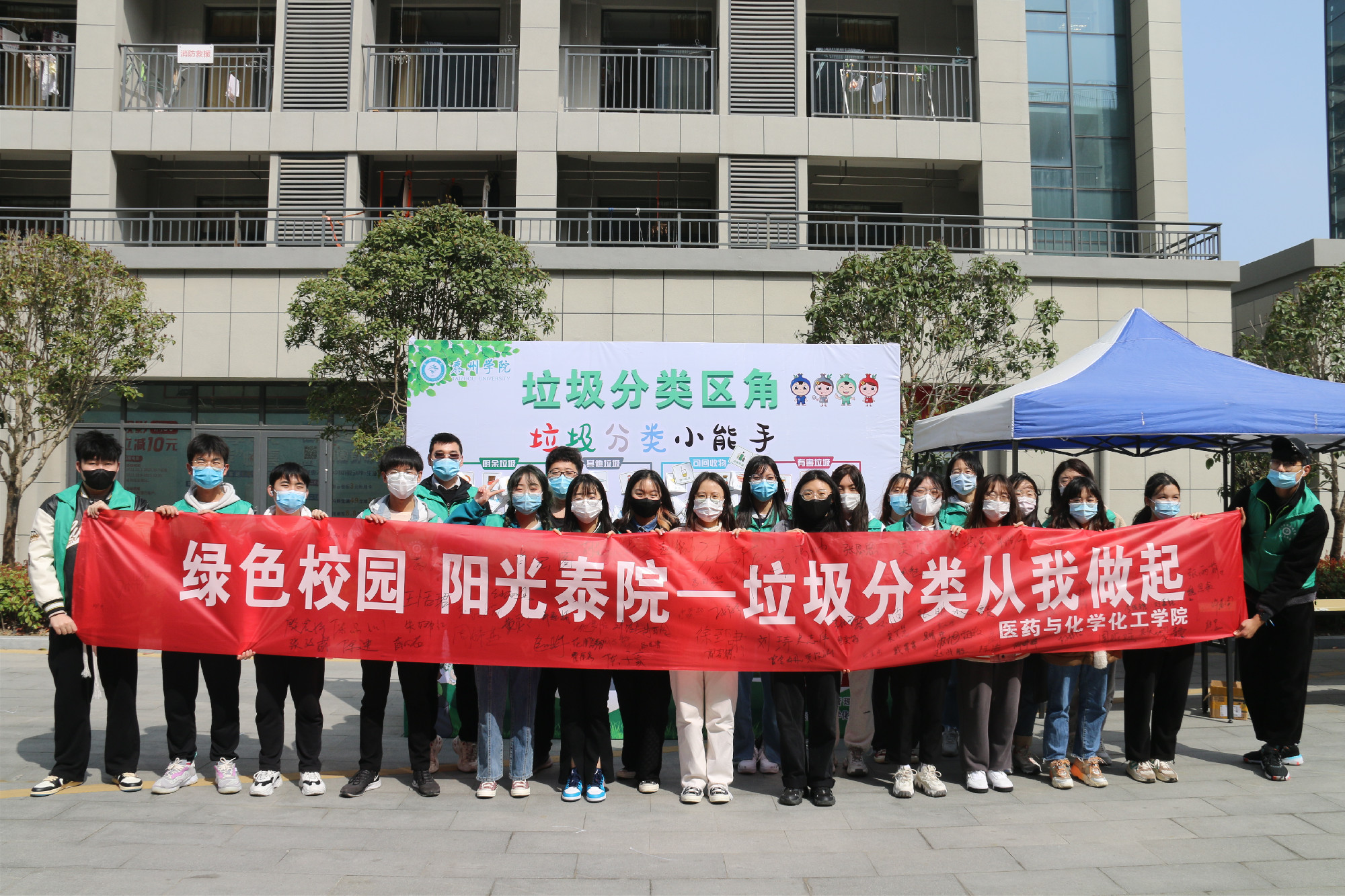 为营造全校共建“绿色校园”、全员参与绿色行动的浓厚氛围,医药与化学化工学院联合后勤管理处开展“阳光校园,绿色泰院”垃圾分类主题活动,在校园内进行垃圾分类的宣传和实践。