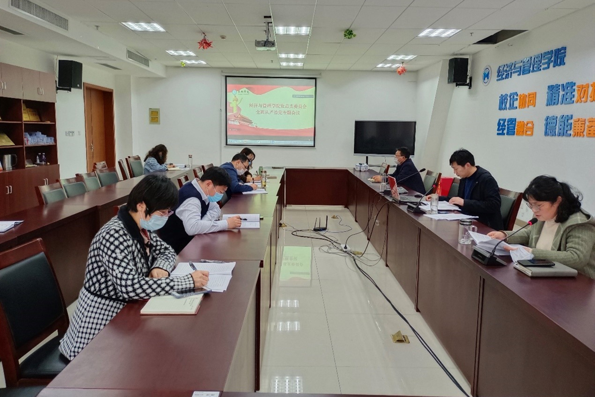 3月16日下午,经济与管理学院党总支委员会召开全面从严治党专题会议,全体院领导、党总支委员、各支部书记以及学院科级以上干部参加了会议,会议由党总支书记徐小兵主持。