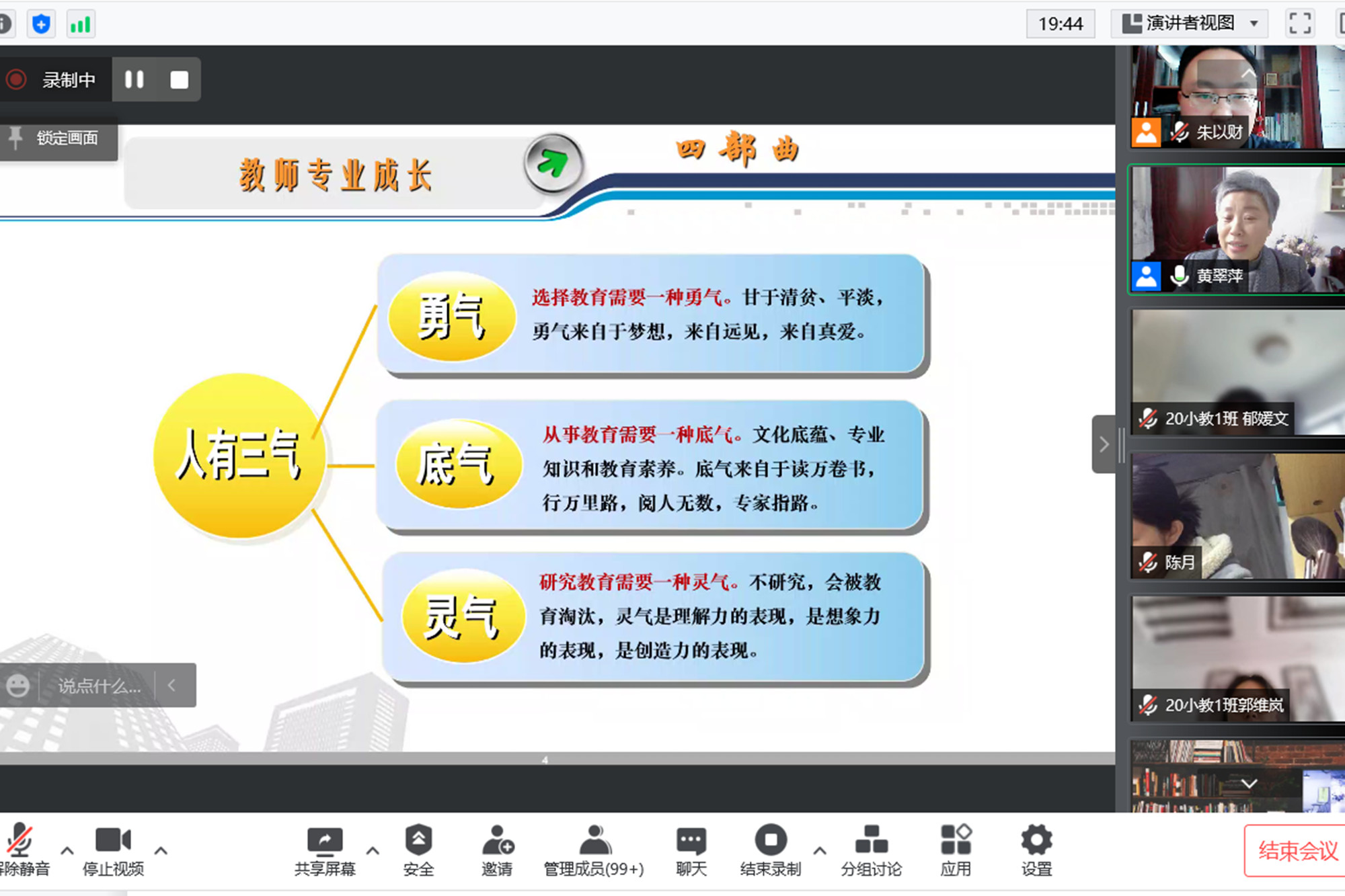 3月19日上午,LETOU国际米兰官网2020级卓越师范生能力提升与创新训练营开学第一课暨第十期“致远讲堂”在线上举行,江苏省特级教师、正高级教师、泰州市人大代表、泰州市名校长黄翠萍老师应邀作“魅力教师四部曲”专题讲座。2020级全体卓越师范生以及师生代表100余人在线上聆听了讲座,讲座由卓越师范生能力提升与创新训练营班主任朱以财老师主持。