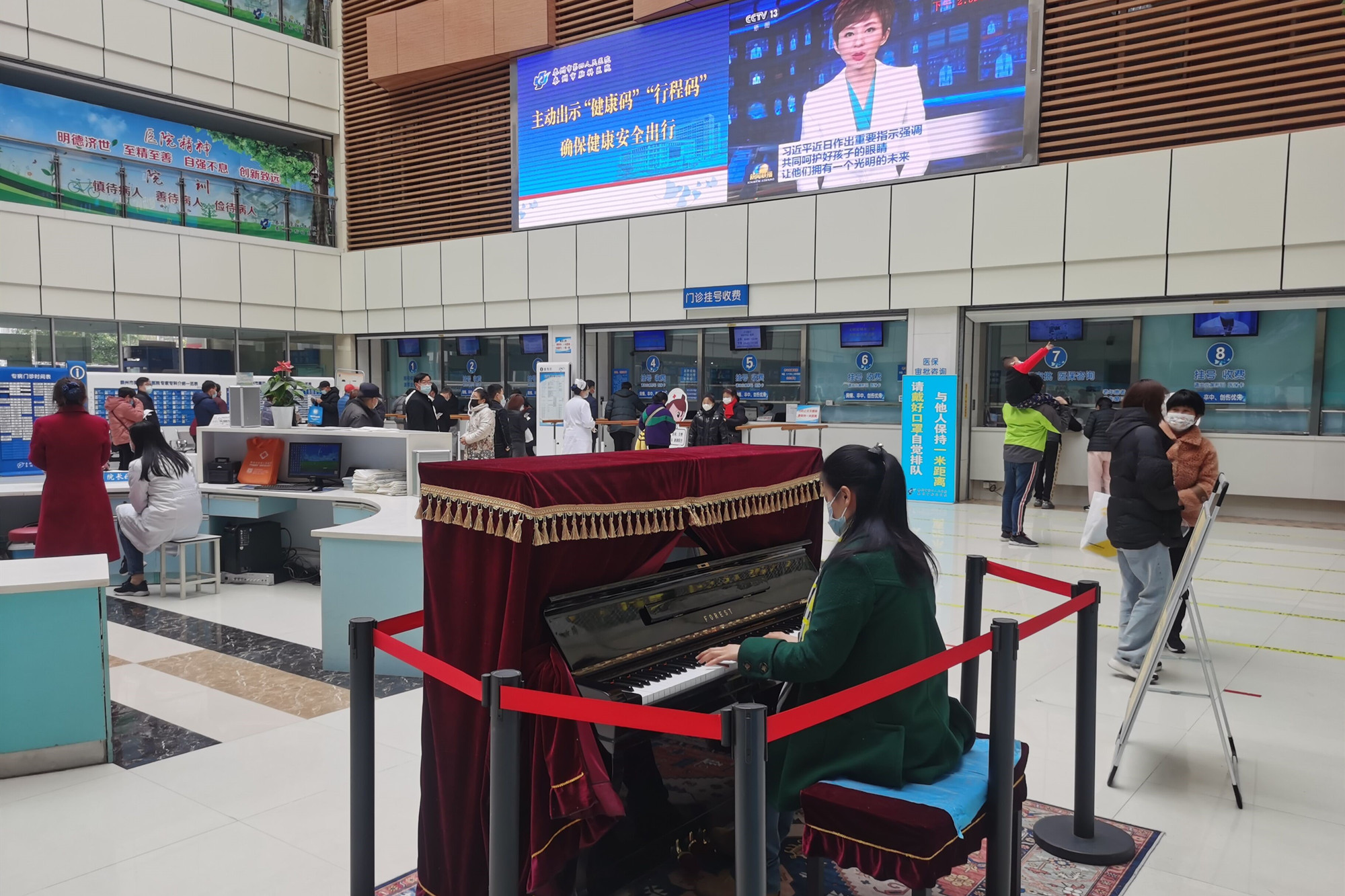 音乐学院翟震老师主动报名泰州市第四人民医院驻院钢琴演奏志愿者,在医院门诊大厅进行钢琴演奏,用自己的专业为防疫工作尽绵薄之力。翟震说:“作为一名高校音乐学院的专职钢琴教师,能够舒缓患者和医护人员的紧张情绪和焦虑心情,我心中充满幸福。我会一直把这件事情坚持做下去。在这场没有硝烟的战争中,我们众志成城,一定能够战胜一切困难。”