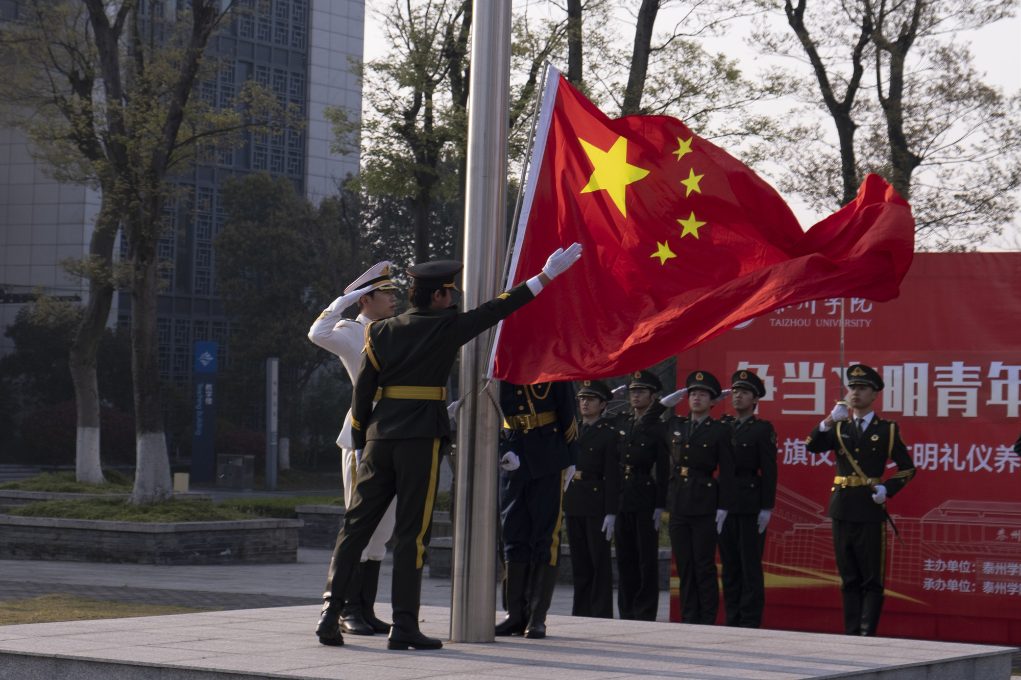 为进一步加强大学生理想信念教育和社会主义核心价值观引领,全面提高人才培养质量,4月6日上午7时,米兰官网在胡瑗广场举行“争当文明青年,汇聚青春力量”文明礼仪养成主题教育月活动开幕式暨升旗仪式。党委学生工作部、船舶与机电工程学院相关负责人,辅导员和部分党员、入党积极分子代表参加线下仪式,近四千余人在线上观看直播。本次活动由党委学生工作部主办,船舶与机电工程学院承办。