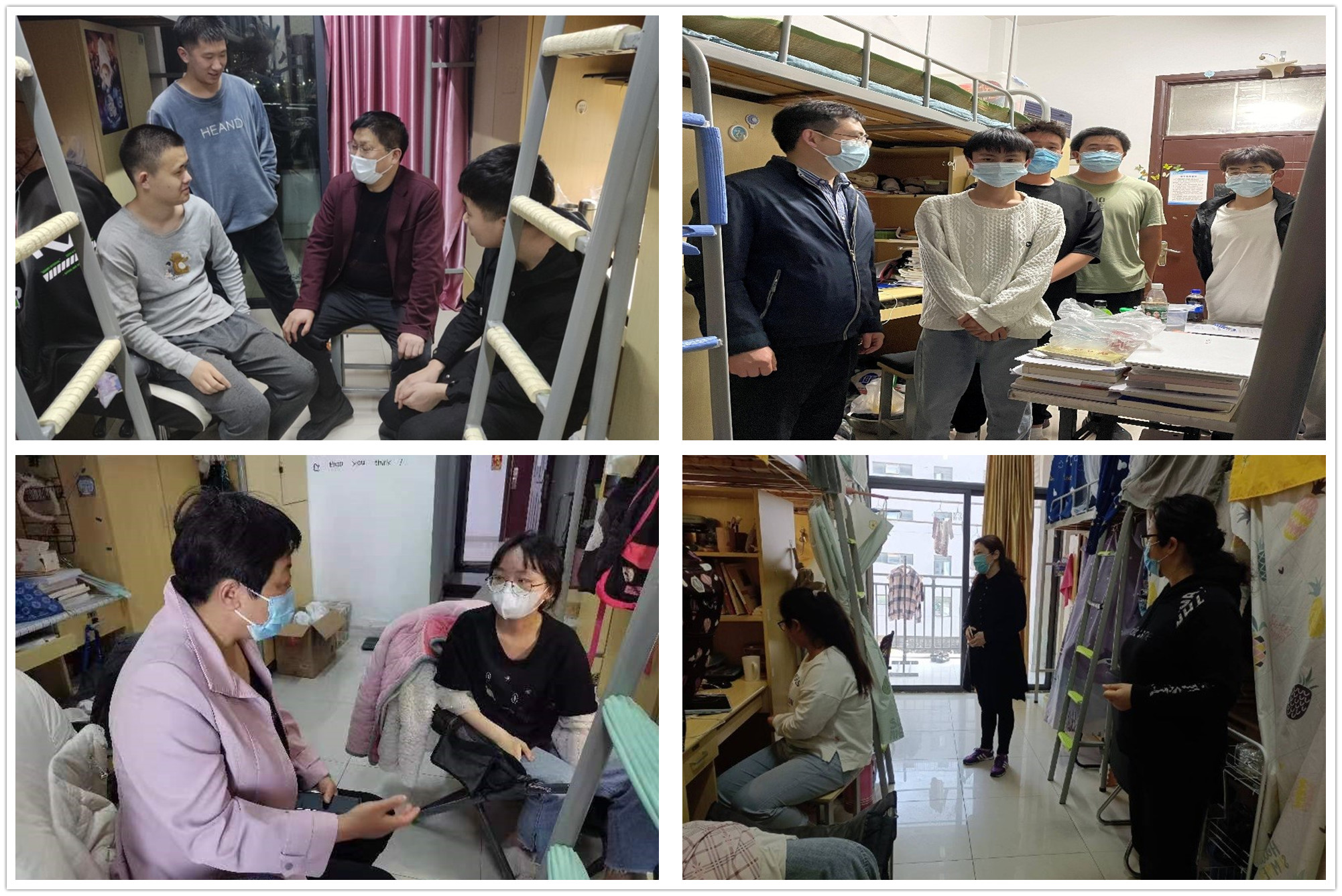 自米兰官网实施疫情防控封闭管理以来,广大住校干部下沉到联系班级,通过走访慰问、座谈交流等多种形式关心服务学生,宣传疫情防控政策,普及防疫科普知识,了解学生学习、生活、职业规划等方面情况,及时为学生排忧解难,坚定了学生和学校“同心抗疫”的信心。