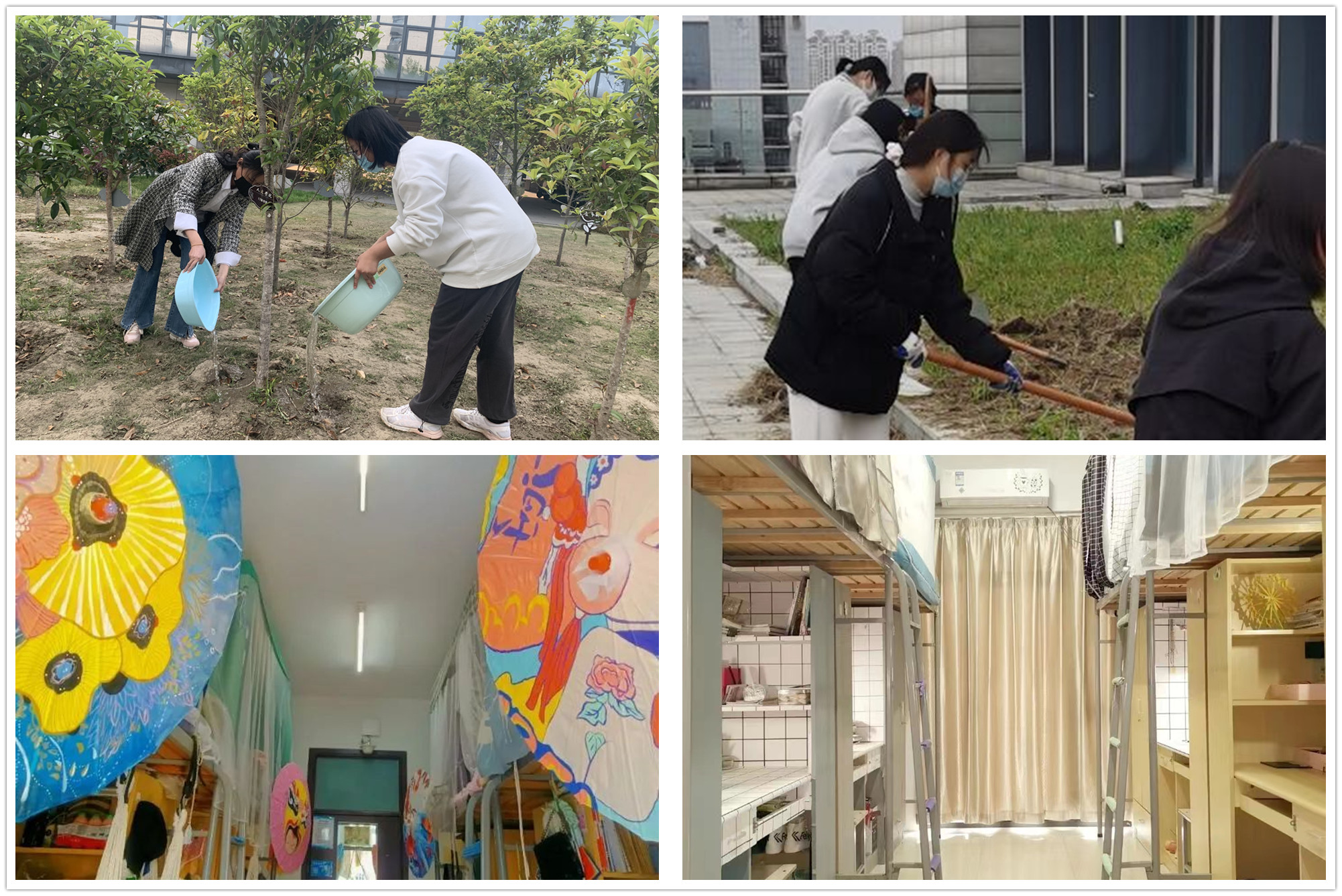 最美人间四月天,针对同学们长期的宅生活,人文学院、LETOU国际米兰官网组织学生参加“绿色校园行动”。他们组织学生为班树进行浇水、养护,在校园内除草松土,让同学们走出宿舍,亲近自然,让劳动最光荣、劳动最美丽成为校园的一道美丽风景。音乐学院、美术学院组织宿舍文化建设,通过学生的收拾整理、创意打造,让寝室更加整洁、温馨,让室友更加团结亲密,让大家更加轻松地度过疫情期间在校的时光。