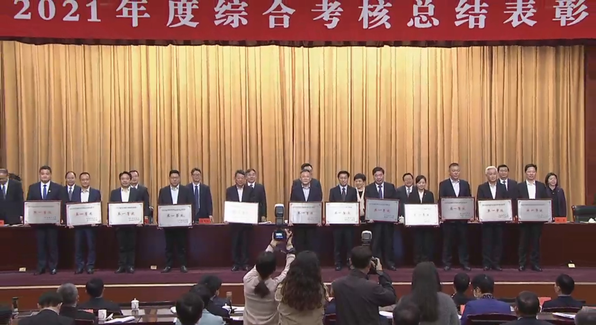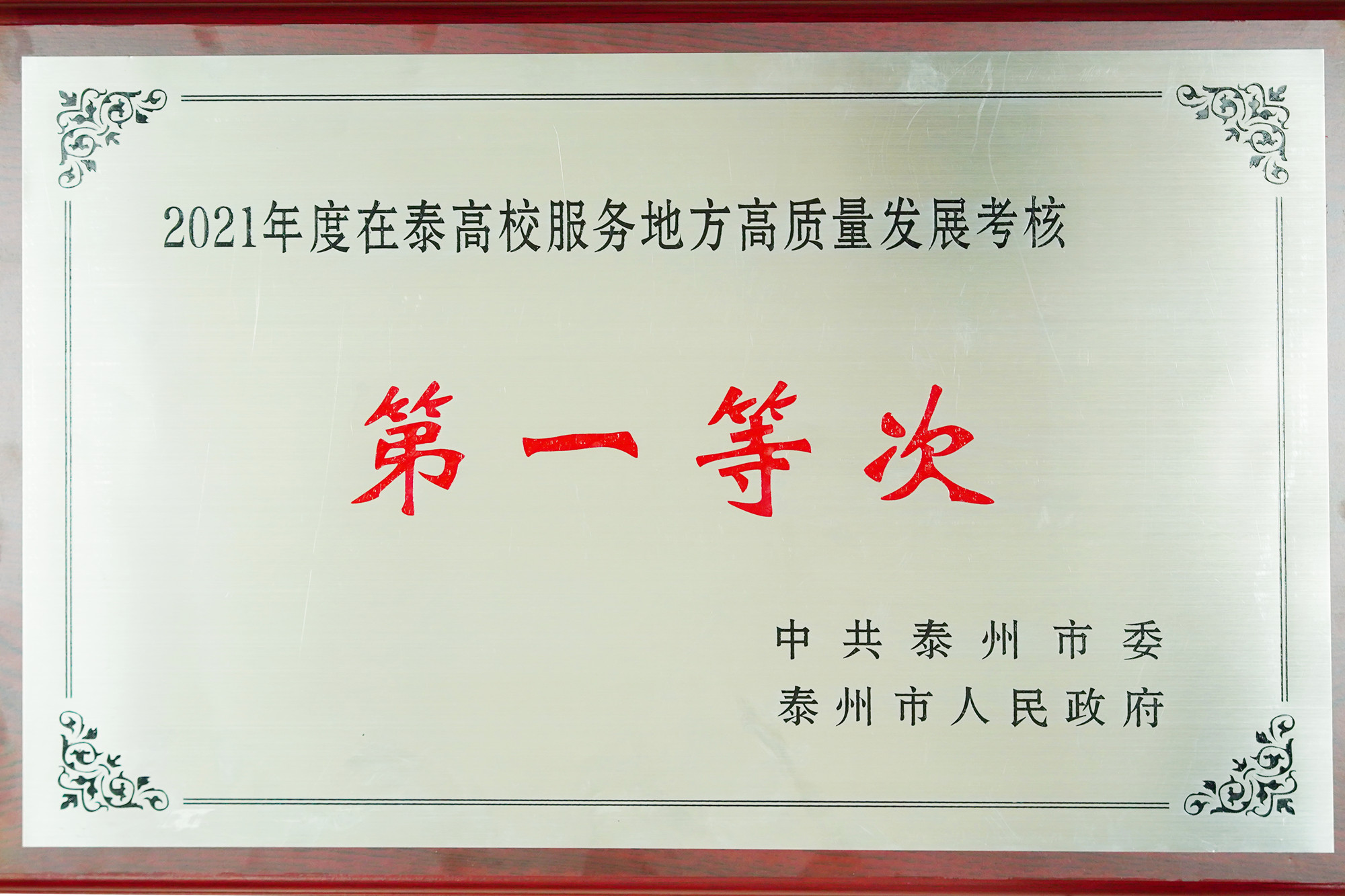4月29日,泰州市委、市政府召开2021年度综合考核总结表彰大会,米兰官网荣获在泰高校服务地方高质量发展考核第一等次。校党委书记赵茂程代表学校上台领奖,校各相关部门A岗负责人在D2109会议室以观看视频直播方式参加了会议。