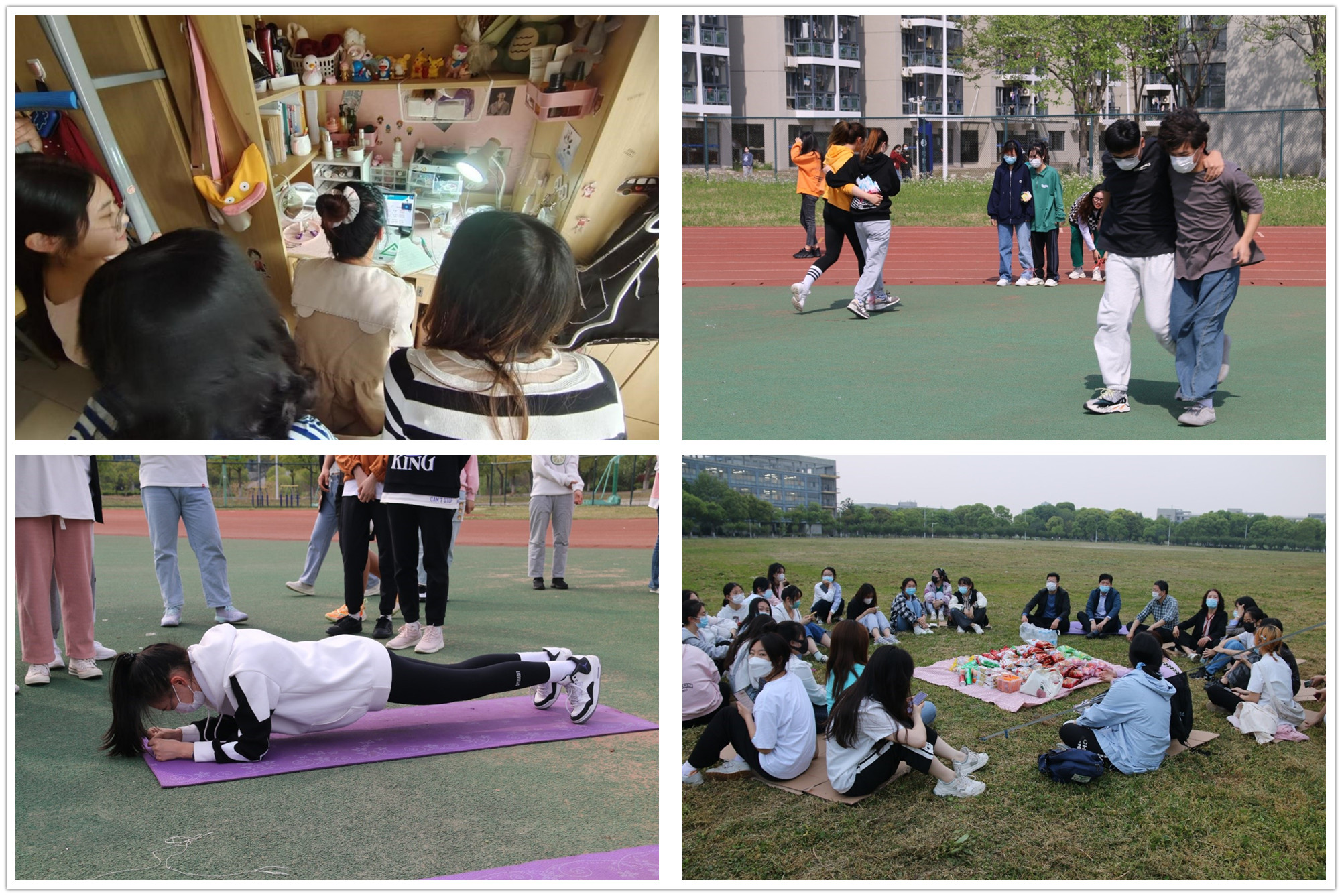 注重劳逸结合,引导强身健体。读书节当天,经济与管理学院组织师生开展“星空夜谈”读书沙龙活动,老师们带领大家分享读书心得,交流专业学习体会,唤醒身心活力,拥抱美好的春天。学院还组织了酷狗S运动、趣味运动等系列活动,通过两人三足、团队跳绳、集体拔河等师生互动,鼓励同学们走出宿舍,加强体质锻炼,打造泰院健身圈。