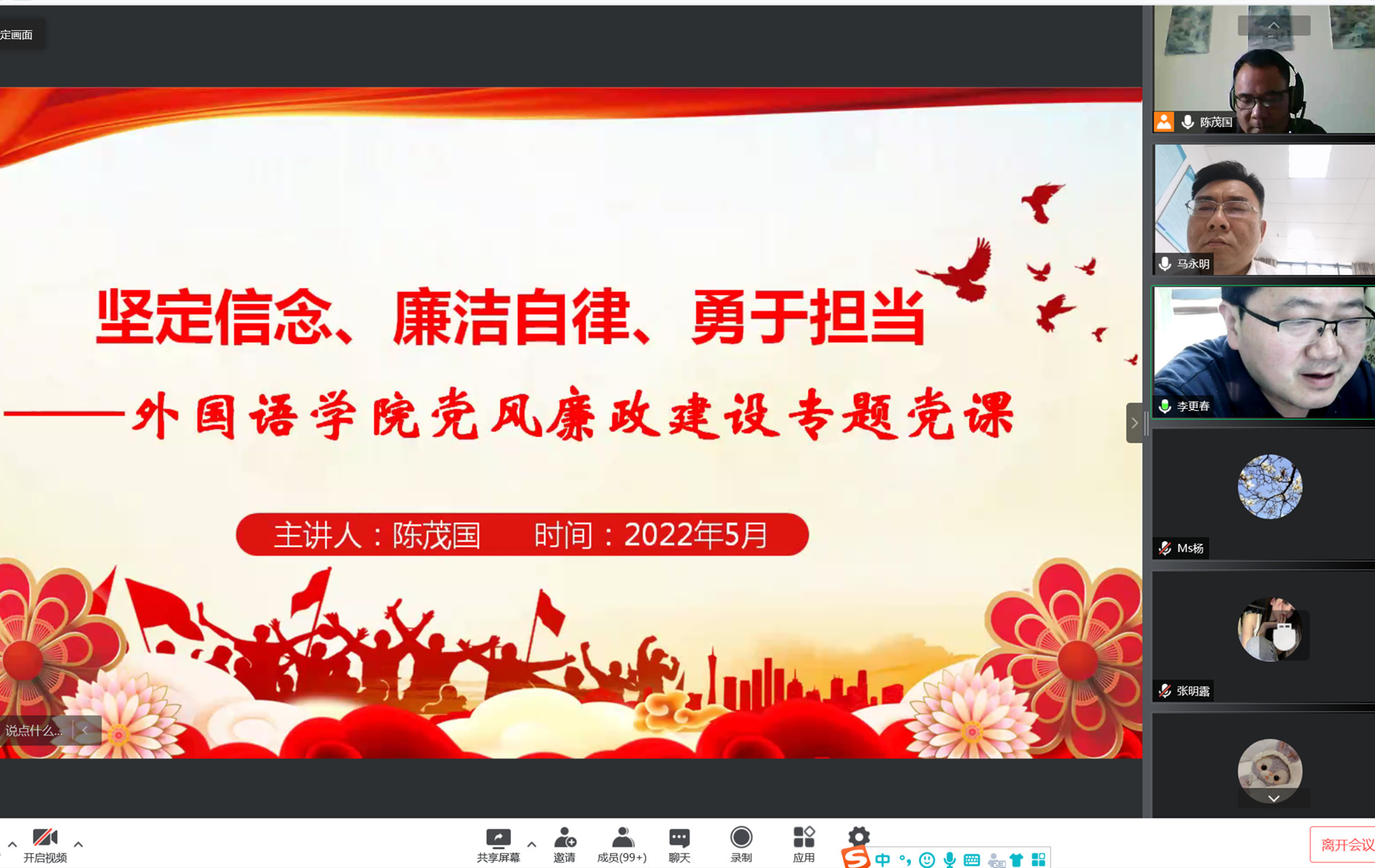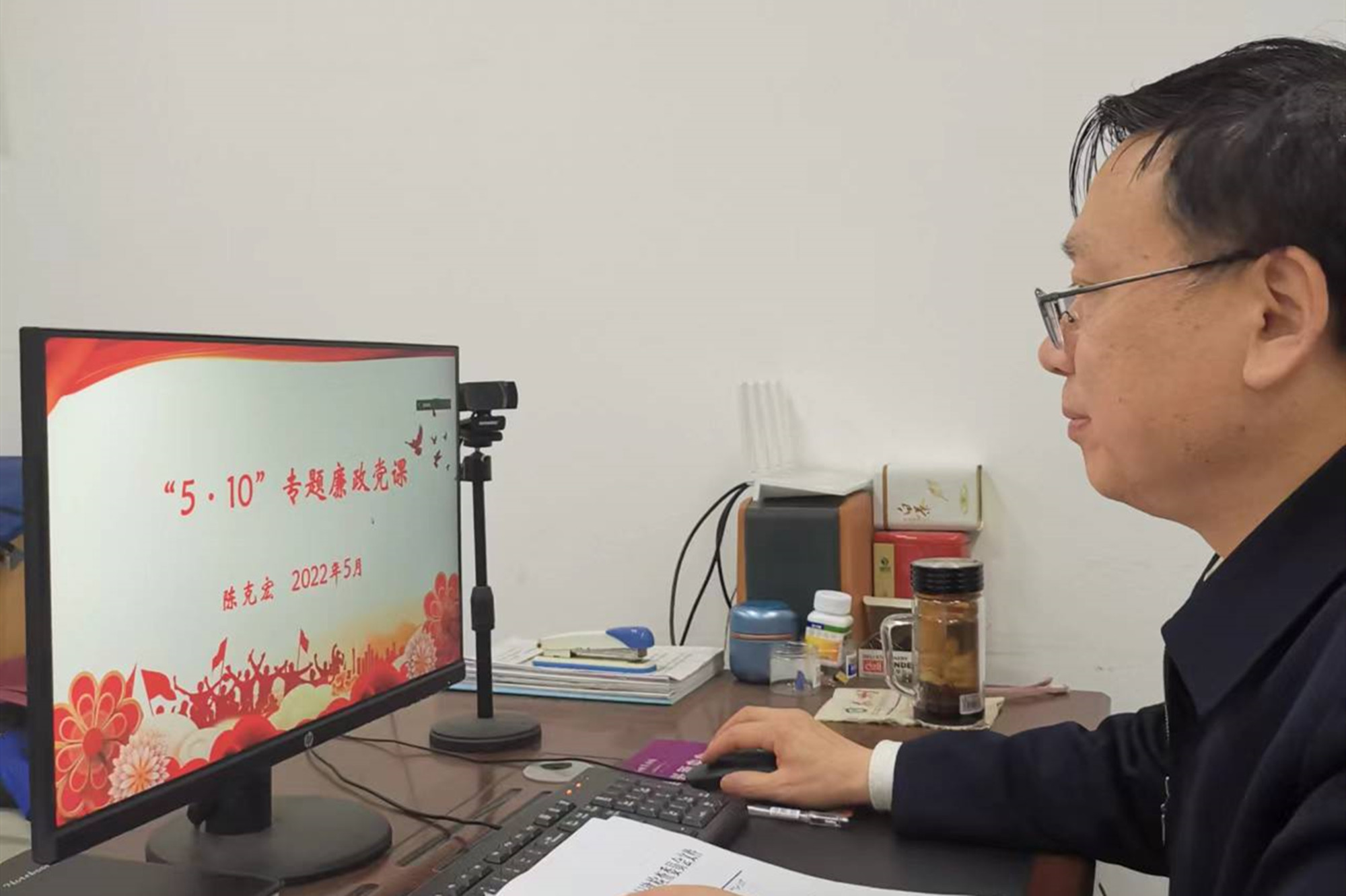 5月8日,船舶与机电工程学院开展“5·10”专题廉政教育,党总支书记陈克宏通过腾讯会议,为全体党员上了一堂廉政党课。