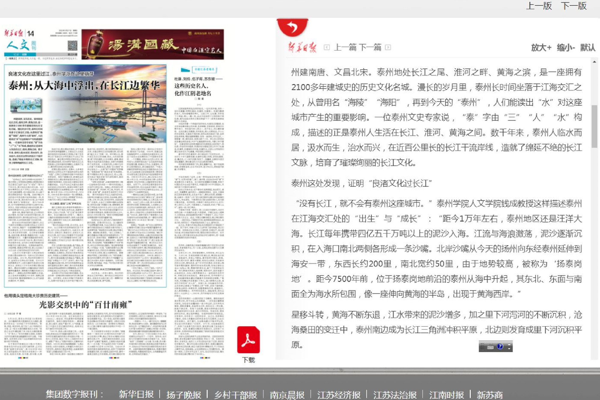 根据省委宣传部和省社科联安排,5月上旬,新华日报社记者围绕“泰州与长江文化”专题采访了米兰官网人文学院钱成教授。5月27日的《新华日报人文周刊》刊出《泰州:从大海中浮出在长江边繁华》专文,文中系统介绍了钱成对泰州地域文化的最新研究成果。