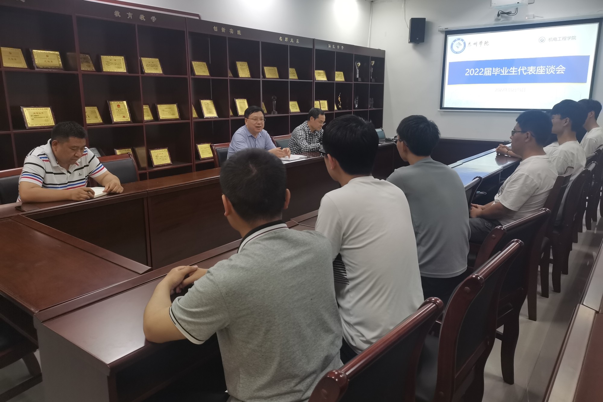 为深入了解毕业生心声,更好地服务学生成长成才,6月15日下午,机电工程学院在D2403会议室举行毕业生代表座谈会。学院党总支书记陈克宏、院长赵振江等领导参加,会议由团总支书记、学工办主任陈娟主持。