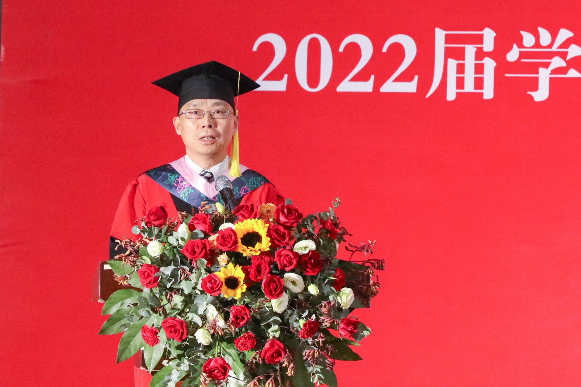 鲁学军发表了题为《在青春赛道上奋力奔跑》的讲话。他代表全体校领导、全校师生向学院圆满完成学业的242名毕业生们表示了热烈的祝贺;诚挚感谢同学们以“泰院人”的使命担当投身学校和学院的大事要事,以“青年人”的朝气蓬勃为学校增添了生机和活力。他希望同学们牢记习近平总书记对新时代中国青年的嘱托,在青春的赛道上奋力奔跑。鲁学军对同学们提出四点期望:一是坚定理想信念,树立远大理想,找准奔跑的方向;二是主动担当作为,投身强国伟业,融入奔跑的洪流;三是乐于吃苦耐劳,磨砺意志品格,坚定奔跑的信念;四是保持平和心态,创造幸福生活,迈实奔跑的脚步。