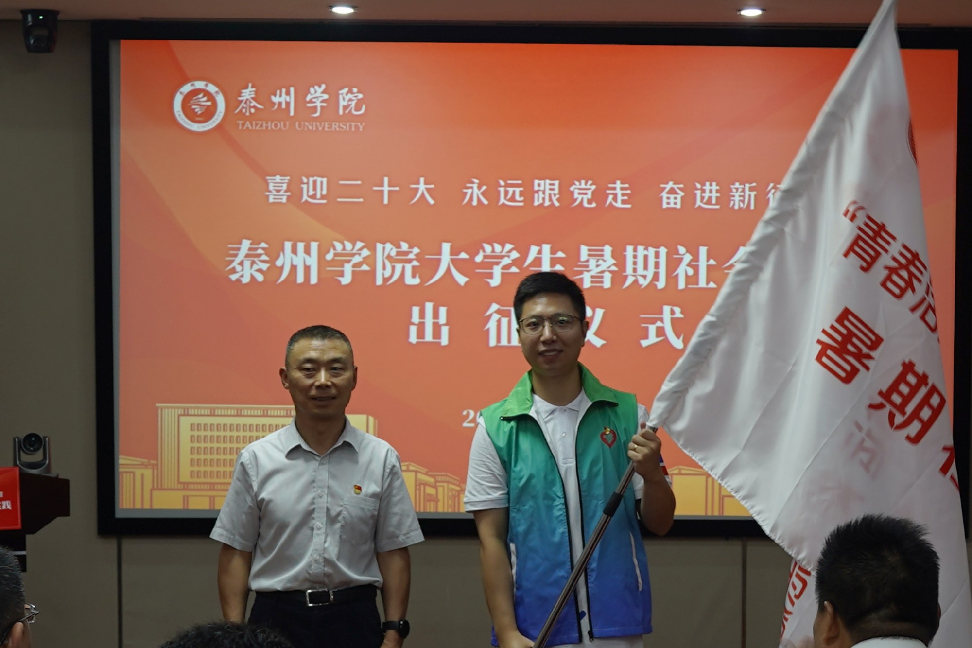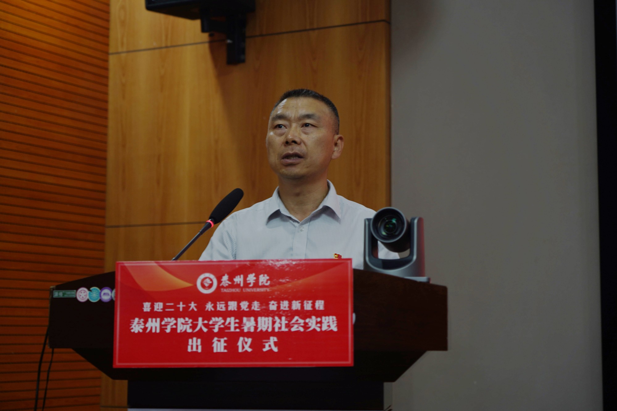 鲁学军讲话并宣布出征。他肯定了米兰官网近年来年暑期社会实践工作取得的成绩以及相关单位和师生为今年暑期社会实践工作所做出的努力,希望青年学生用内心感受时代脉搏,在为人民服务中体现青年担当;用责任传播泰院精神,在为人民服务中展示青年形象;用脚步丈量家乡大地,在为人民服务中彰显青年风采,积极投身暑期社会实践活动,把所学的知识、技能与人民群众的生产生活紧密结合,与地方经济社会发展紧密结合,在社会实践中扩大视野、增长才干、全面发展。