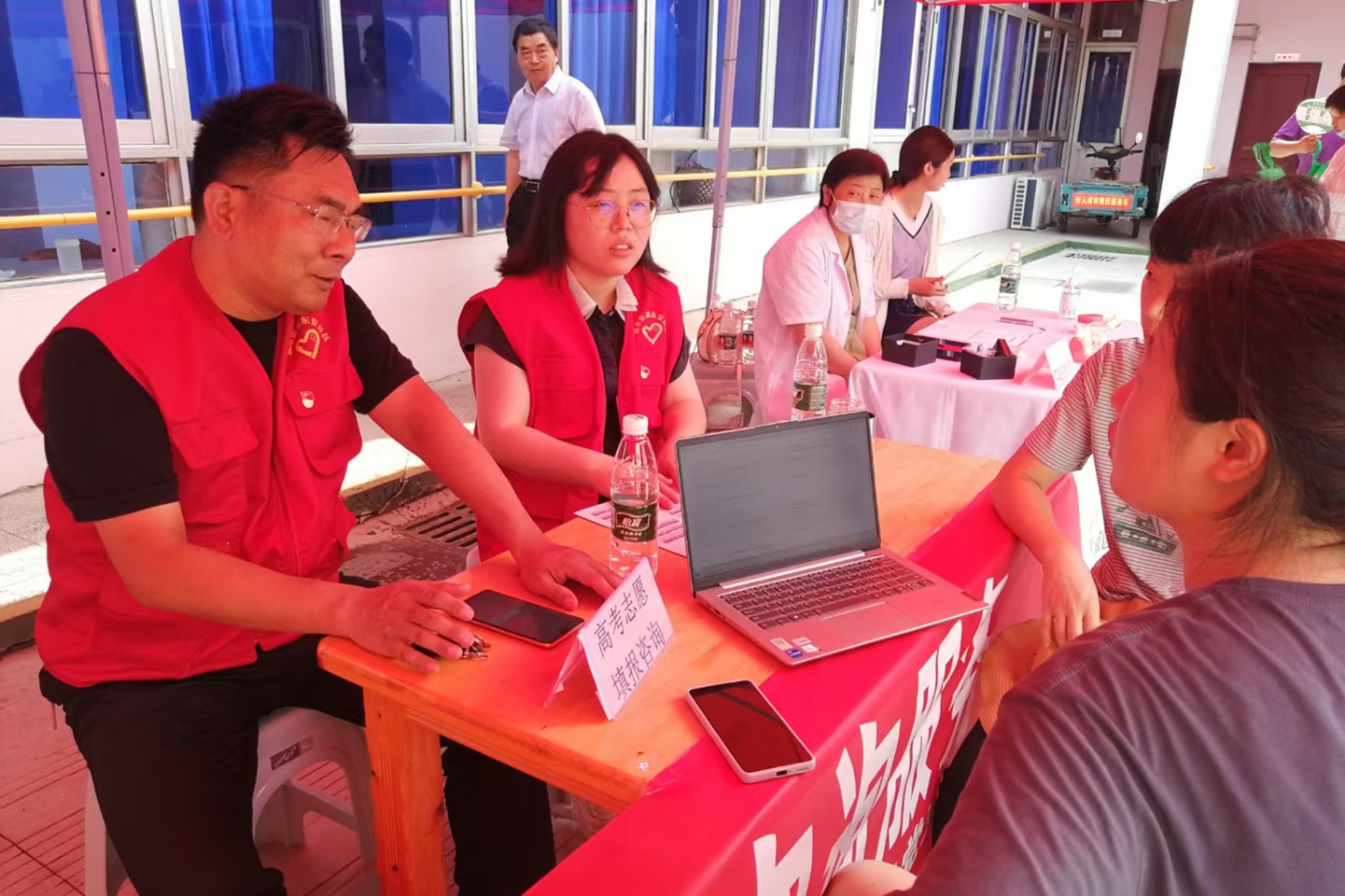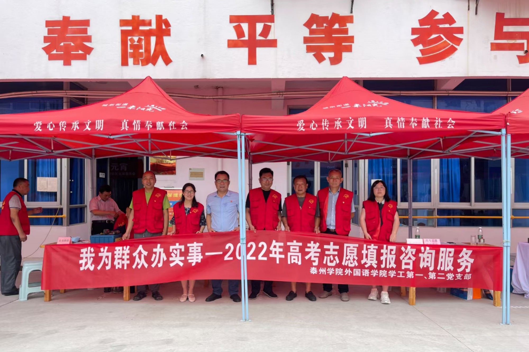 为进一步巩固党史学习教育成果,帮助群众解难题,发挥党员同志的先锋模范带头作用,6月29日上午,LETOU国际米兰官网学工第一和第二党支部开展“我为群众办实事”活动,赴泰州市海陵区城东街道东安社区参加党员志愿服务大集市,提供高考志愿填报咨询服务。