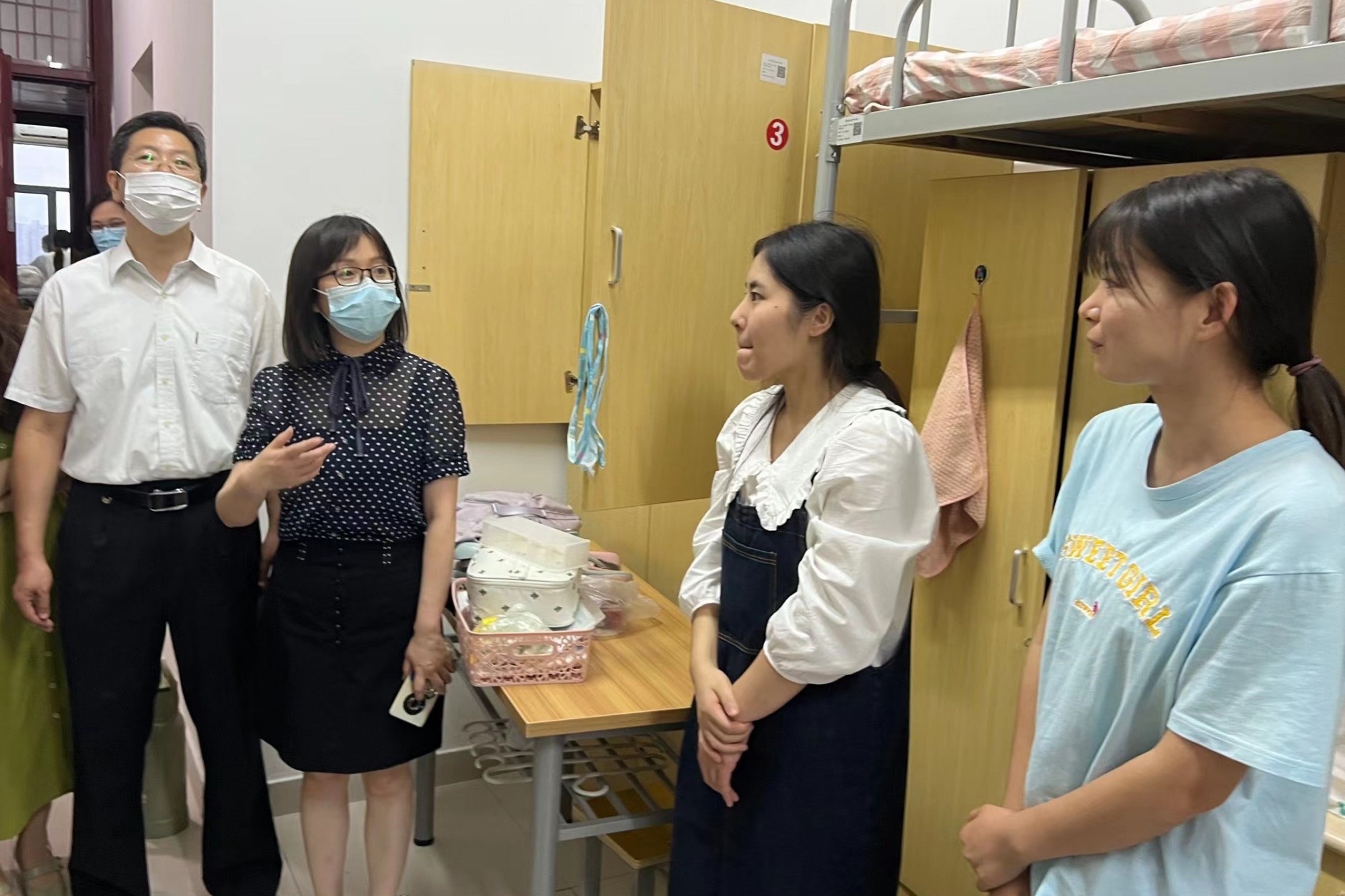 9月7日下午,副校长卜慧芬走访经济与管理学院新生宿舍。经济与管理学院党总支书记徐小兵、院长朱军、党总支副书记刘荣江以及全体辅导员和班主任陪同走访。