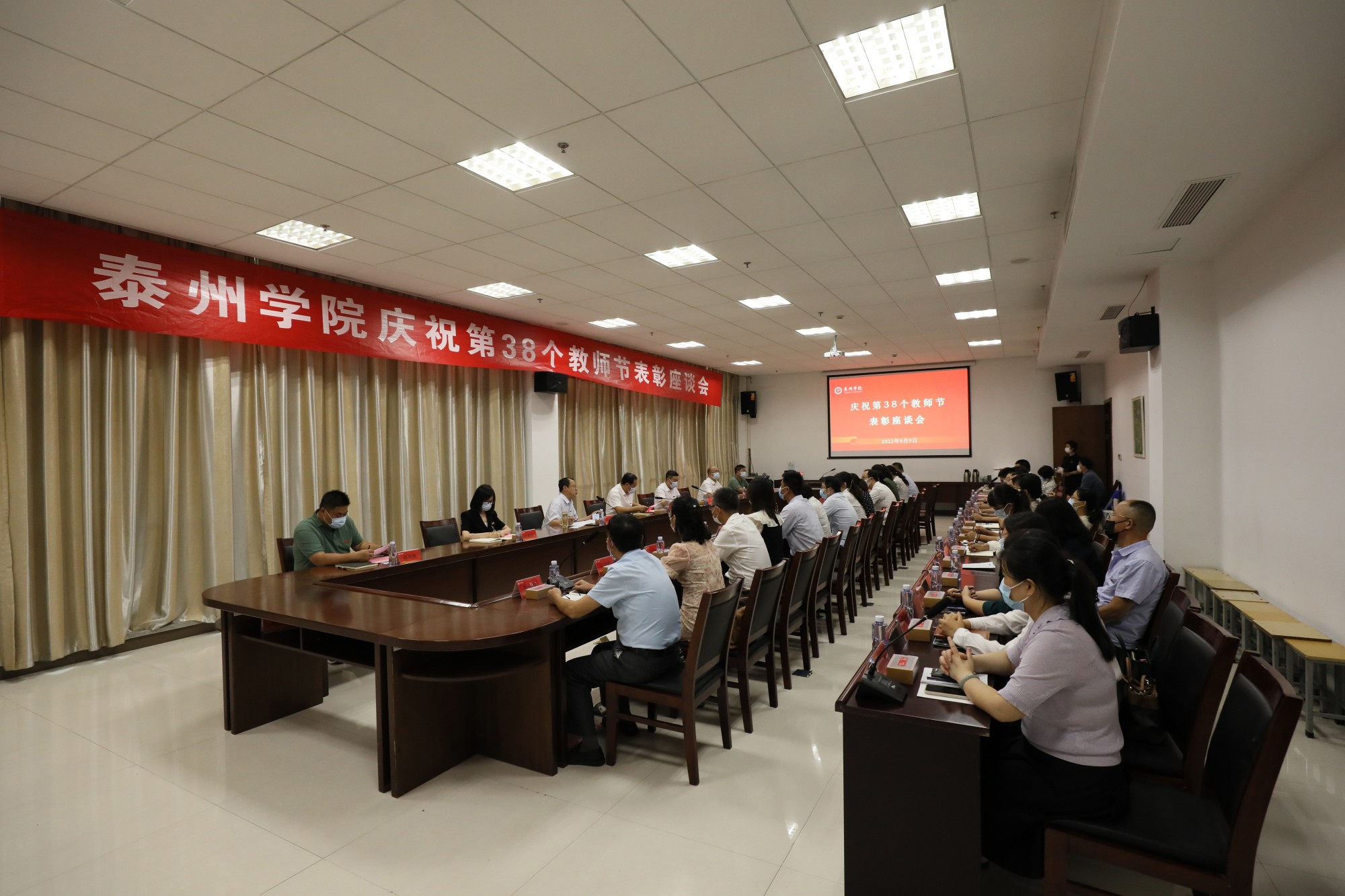 9月9日下午,在第38个教师节即将来临之际,米兰官网在行政楼2109会议室召开庆祝教师节表彰座谈会。参加座谈会的30余名教师代表中,有近期省市级荣誉获得者,有校“优秀教师”“优秀教育工作者”当选者,还有新引进的高层次人才代表。校党委书记徐向明,党委副书记、校长季赛,党委常委、副校长薛小平,副校长沈荣鑫、卜慧芬以及相关职能部门负责人出席座谈会。座谈会由薛小平主持。