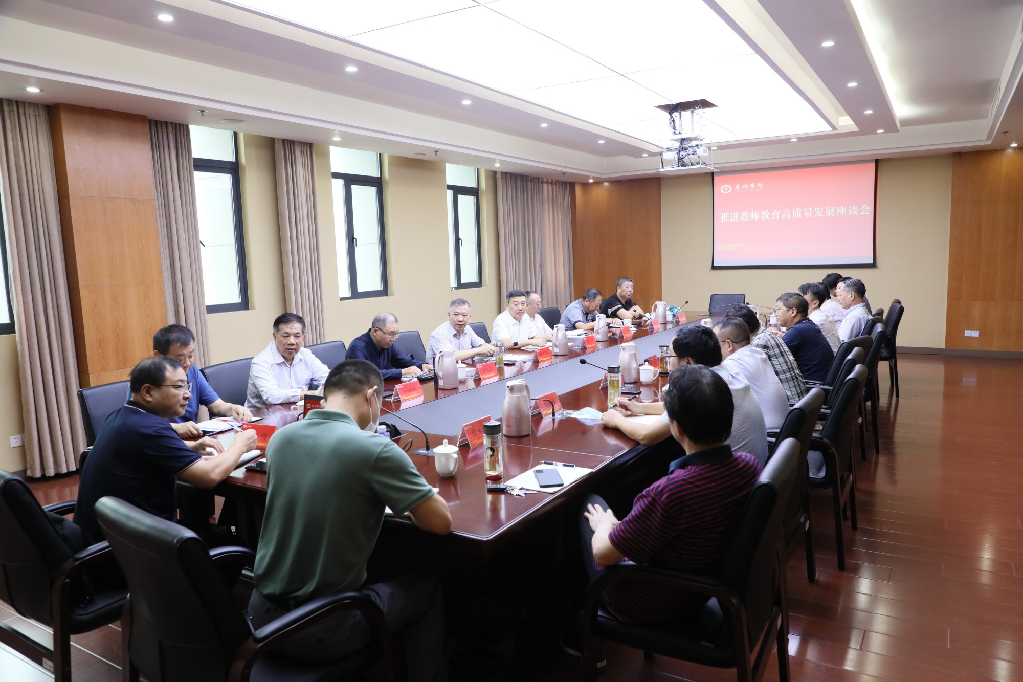 为进一步做特做精做优做强教师教育,打造教师教育特色,9月15日上午,米兰官网推进教师教育高质量发展座谈会在D1505会议室召开。党委副书记、校长季赛,党委副书记、副校长王美林出席座谈会,老教师代表袁永谦、李如齐、范荫荣、王国平、胡文龙以及相关二级单位负责人参加座谈会。会议由校党委常委、副校长徐庆国主持。