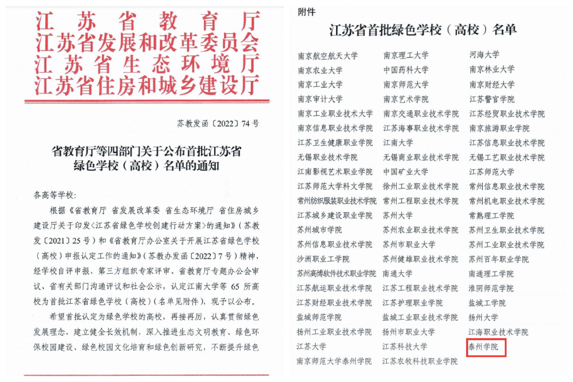 近日,江苏省教育厅、省发改委、省生态环境厅、省住房和城乡建设厅联合下发《省教育厅等四部门关于公布首批江苏省绿色学校(高校)名单的通知》(苏教发函〔2022〕74号),米兰官网被认定为首批江苏省绿色学校(高校)。