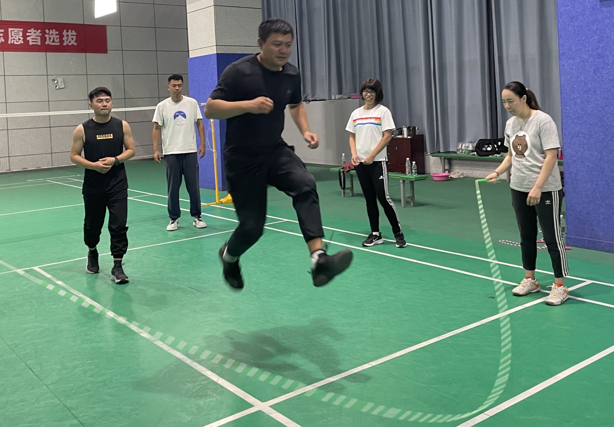 活动中,刘同记老师通过“理论结合实操”的研讨方式,对花样跳绳的起绳、停绳、摇绳、基本跳、两弹一跳、开合跳等进行了指导。他与老师们积极互动、交流研讨,针对不同人群的教授方法传授了宝贵经验。