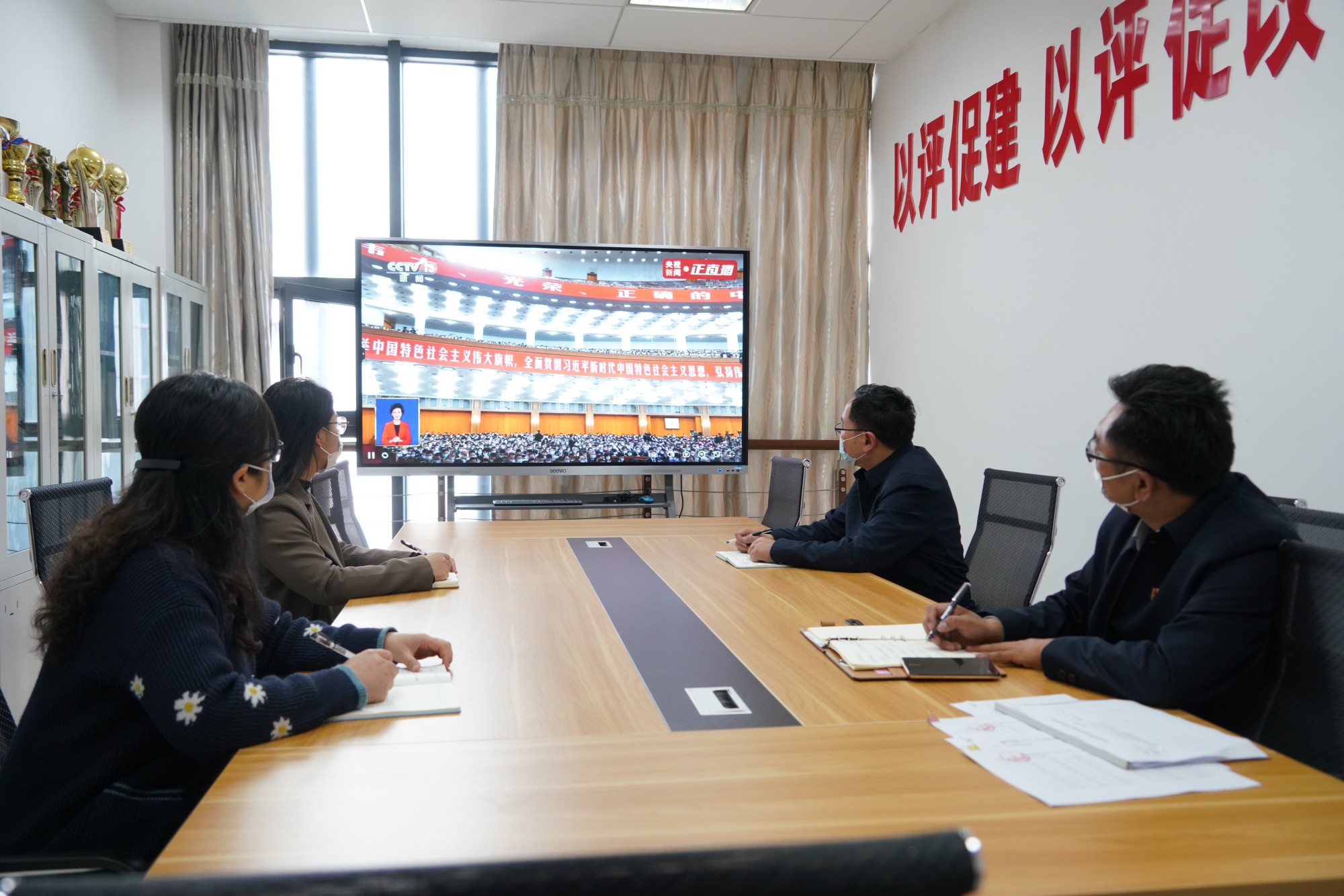 10月16日上午10时,举世瞩目的中国共产党第二十次全国代表大会在北京人民大会堂开幕。校党委副书记、校长季赛,党委副书记邓友祥,党委常委、副校长薛小平,党委常委、副校长沈荣鑫,党委常委、副校长卜慧芬及A岗教职工党员在办公楼D1216集中收看了党的二十大开幕会直播。米兰官网广大党员干部和师生也通过广播、电视、网络等多种方式和途径认真收看收听党的二十大开幕会盛况,热切关注大会进程。