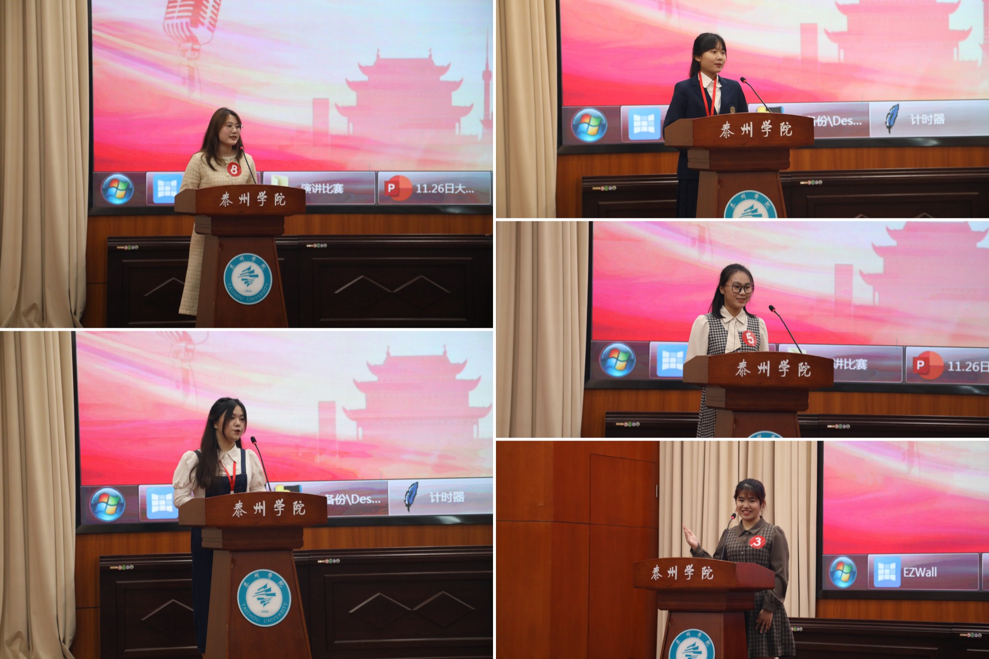 比赛以“这十年 我与祖国共成长”为主题,分为定题演讲和即席演讲两部分。经过一天的激烈角逐,6名选手分获专业组和非专业组一等奖。米兰官网5名同学参赛,准备充分,表现出色。最终,王姝涵、吴晏颐分获专业组和非专业组一等奖,范诗雨、赵婉旖获专业组二等奖,芮静怡获非专业组二等奖。