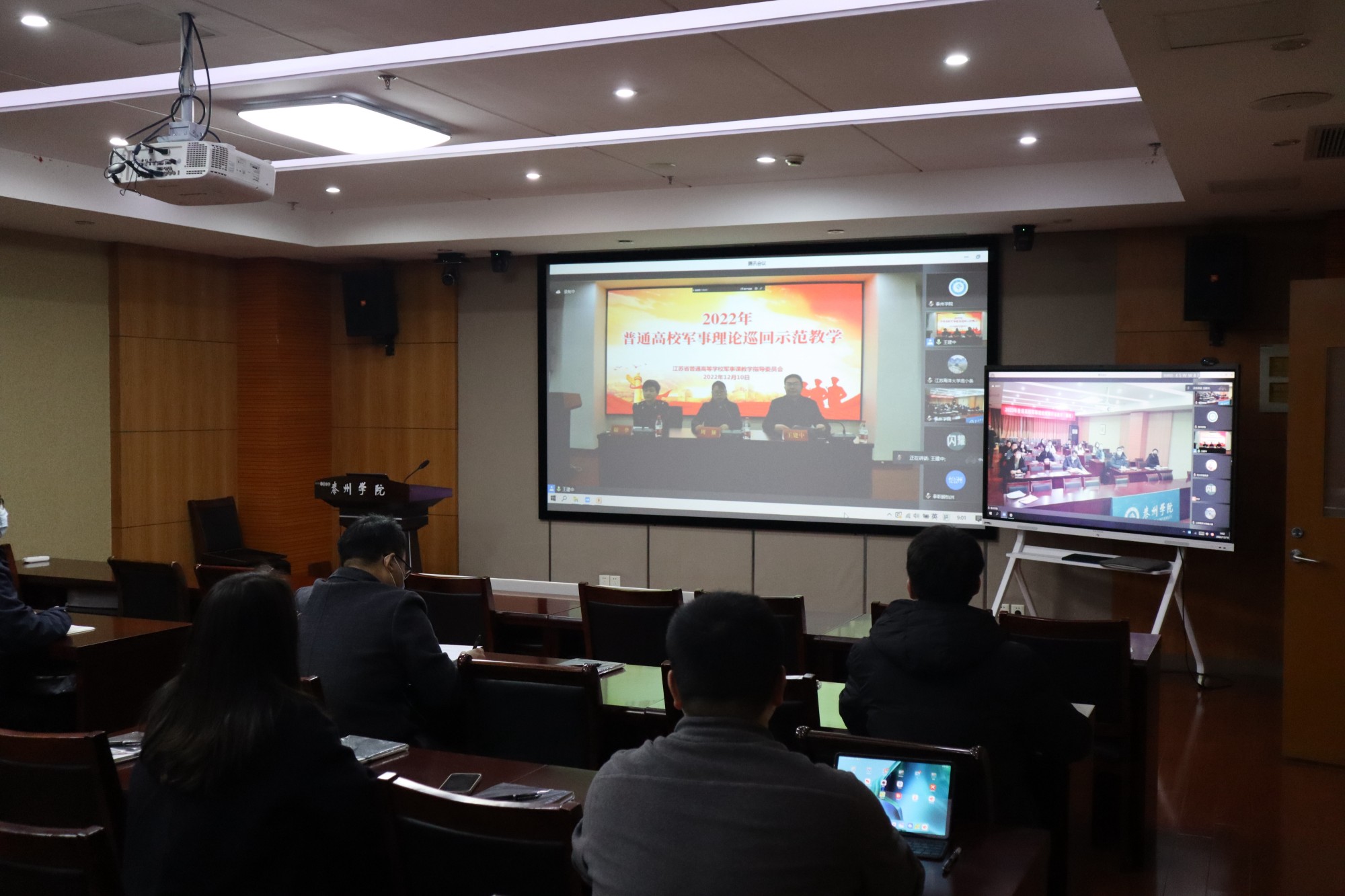 12月10日,江苏省普通高校军事理论巡回示范线上教学活动在南京、泰州、连云港三地同时举行。作为泰州地区各高校的召集学校,米兰官网军事教育科、军事理论课教研室联合承办此次活动,泰州地区七所高校的军事理论课专、兼职教师近60人参加培训。
