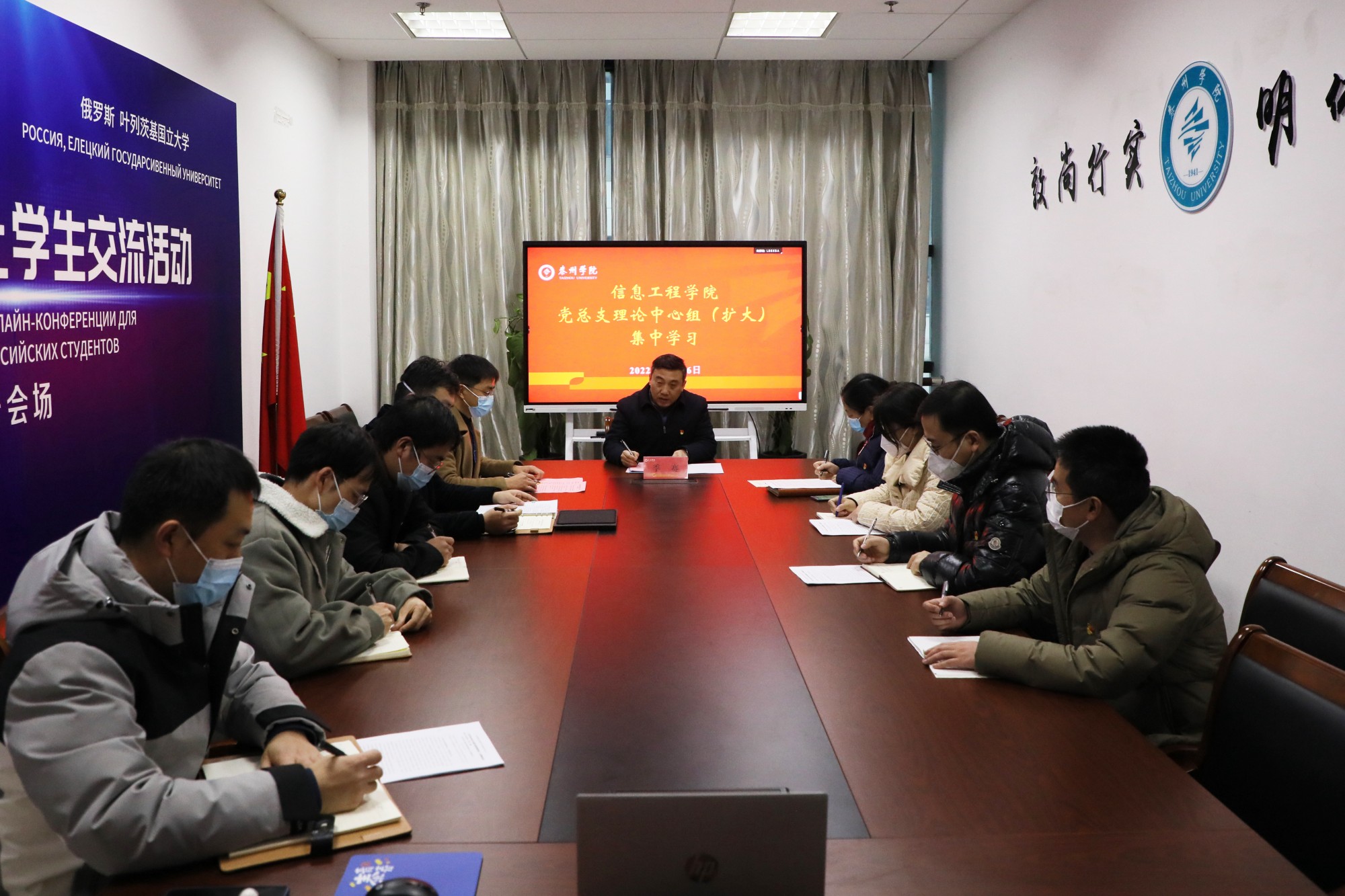 12月16日下午,校党委副书记、校长季赛在D2321会议室巡学旁听信息工程学院党总支理论学习中心组集中学习党的二十大精神。院党总支书记朱诚主持会议,院党总支理论学习中心组全体成员、科级以上人员和辅导员等参加学习。