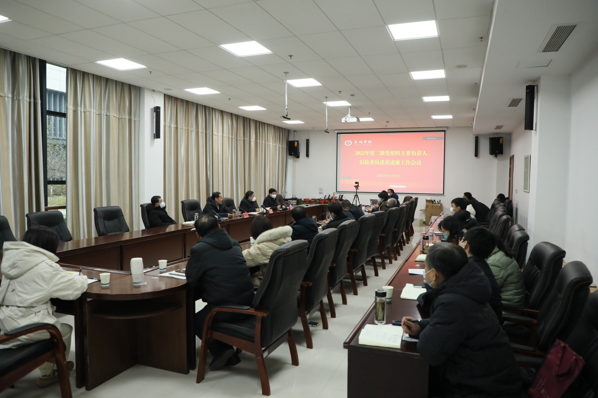 会议采用“线上+线下”方式进行,听取了二级党组织主要负责人代表、纪检委员代表一年来落实全面从严治党主体(监督)责任、个人廉洁自律以及存在问题和整改举措的情况汇报,其他二级党组织主要负责人、纪检委员进行了书面交流。