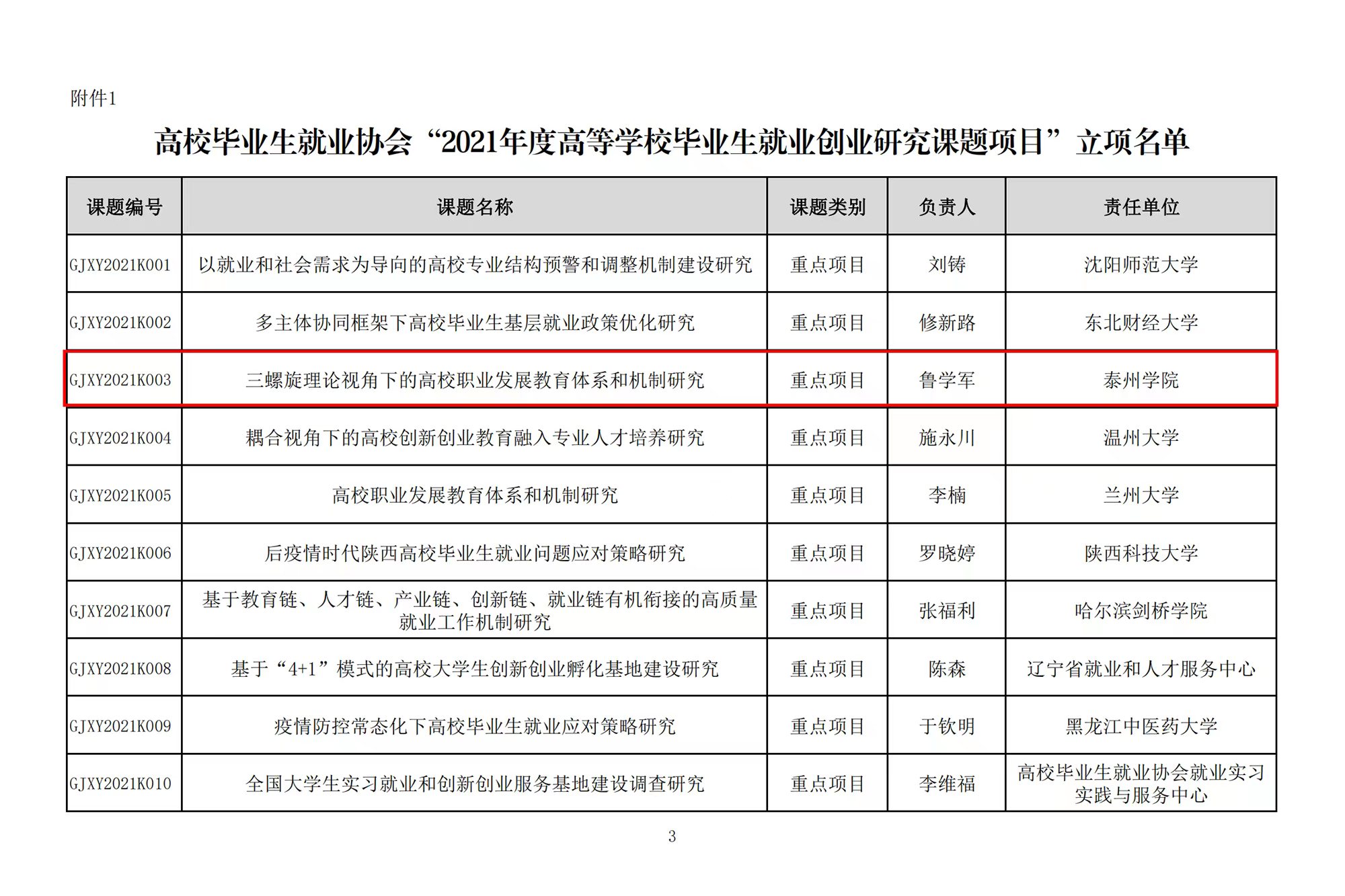近日,高校毕业生就业协会公布了《2021年度高等学校毕业生就业创业研究课题立项名单》,米兰官网一课题获得立项,并被评为重点项目。此次共立项课题154项,其中重点项目仅10项。
