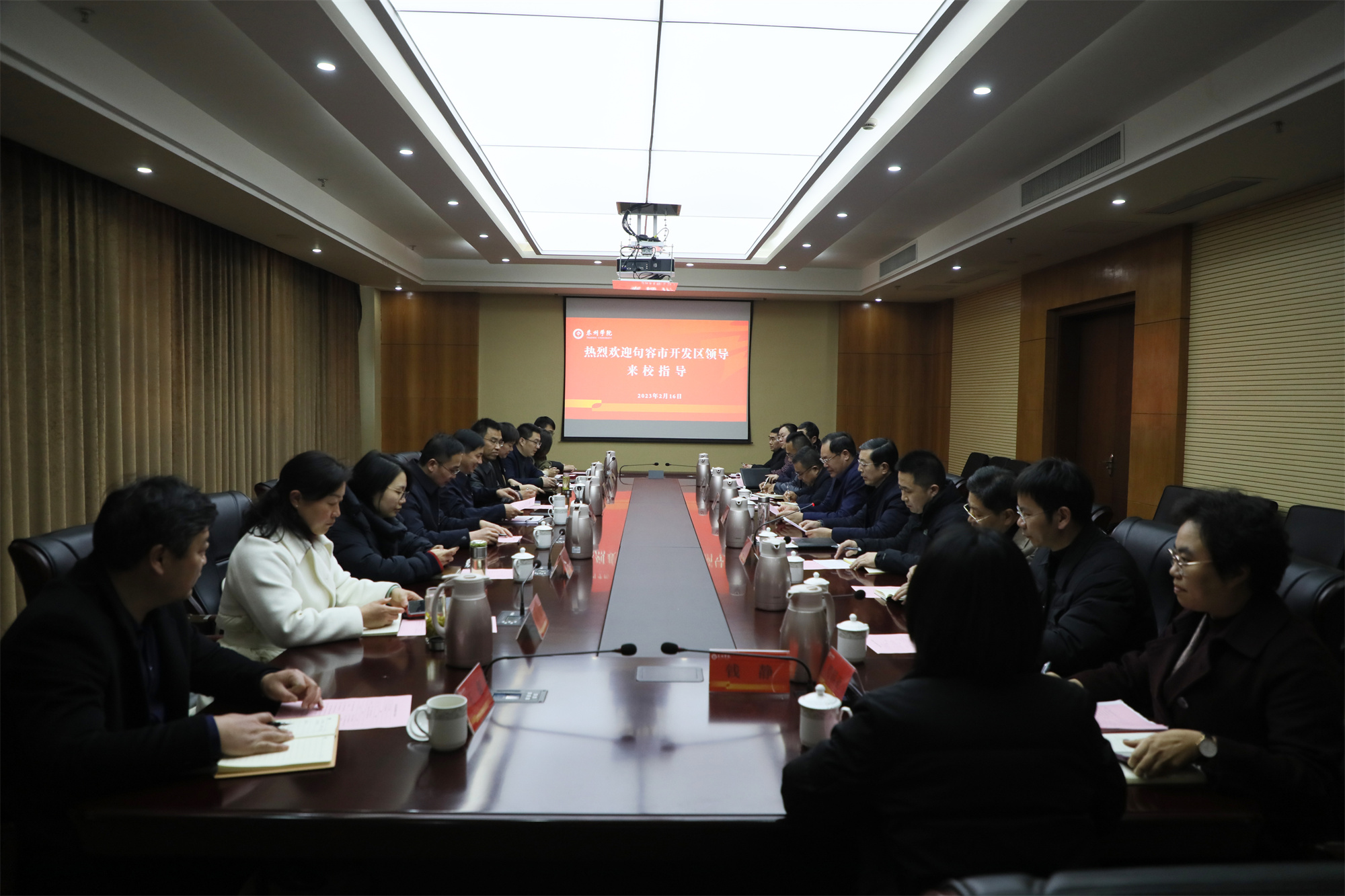 2月16日下午,句容经济开发区党工委副书记、管委会主任吕长江一行10人来米兰官网考察交流。校党委书记徐向明,党委副书记邓友祥,以及相关部门和二级学院负责人参加会议。党委副书记邓友祥主持会议。