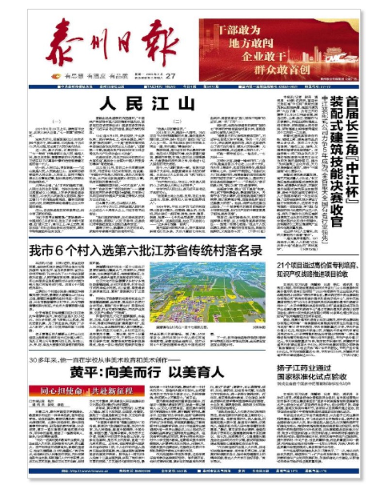 《泰州日报》2月27日A01版报道米兰官网新当选的全国人大代表、美术学院院长黄平教授30多年来始终在学校从事美术教育和美术创作,秉持“向美而行、以美育人”理念,致力于发现美、创造美、传播美,展现了一名基层教育工作者、文艺创作者推进美育事业发展的担当作为。报道题为:《黄平:向美而行 以美育人》,链接为:http://sz.tznews.cn/tzrb/pc/col/202302/27/content_194204.htm