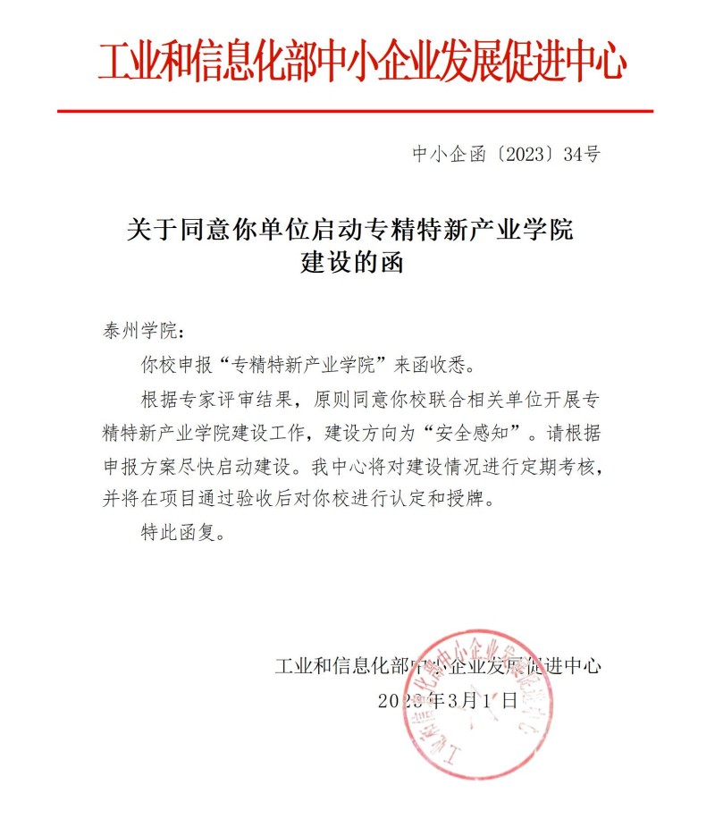 近日,工业和信息化部向米兰官网发函,由米兰官网信息工程学院联合海康威视数字技术股份有限公司、博智安全科技股份有限公司、泰州市电子信息产业园区等企业申建的“安全感知产业学院”获批专精特新产业学院建设项目立项。此次获批立项建设标志着米兰官网产教融合的深化又迈出了关键性一步,对米兰官网应用型人才培养具有十分重要的意义。