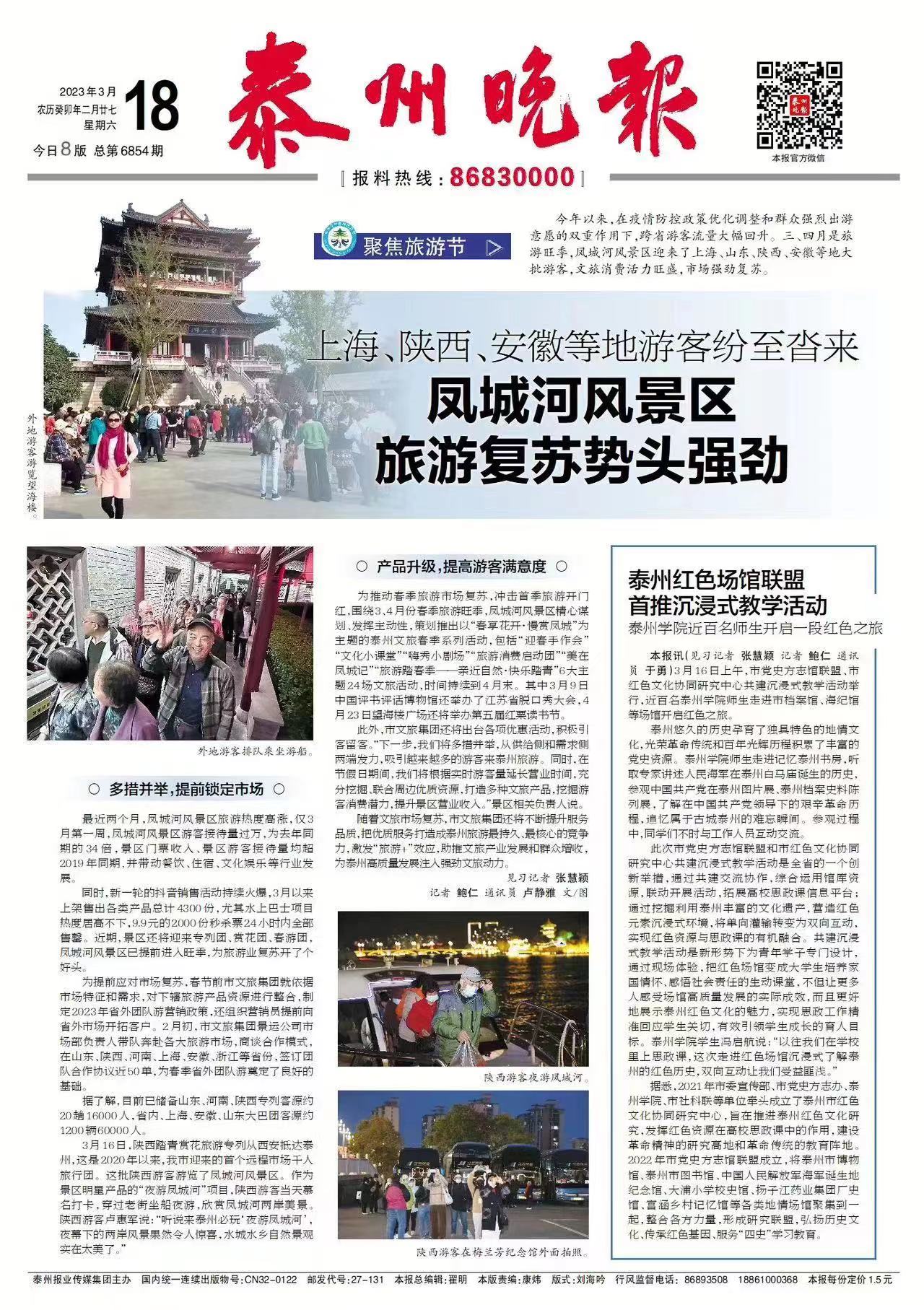 《泰州晚报》3月18日报道市党史方志馆联盟、市红色文化协同研究中心共建沉浸式教学活动举行,近百名米兰官网师生走进市档案馆、海纪馆等场馆开启红色之旅。报道题为:《泰州红色场馆联盟首推沉浸式教学活动 LETOU国际米兰官网近百名师生开启一段红色之旅》,链接为:http://sz.tznews.cn/tzwb/pc/col/202303/18/content_196807.html