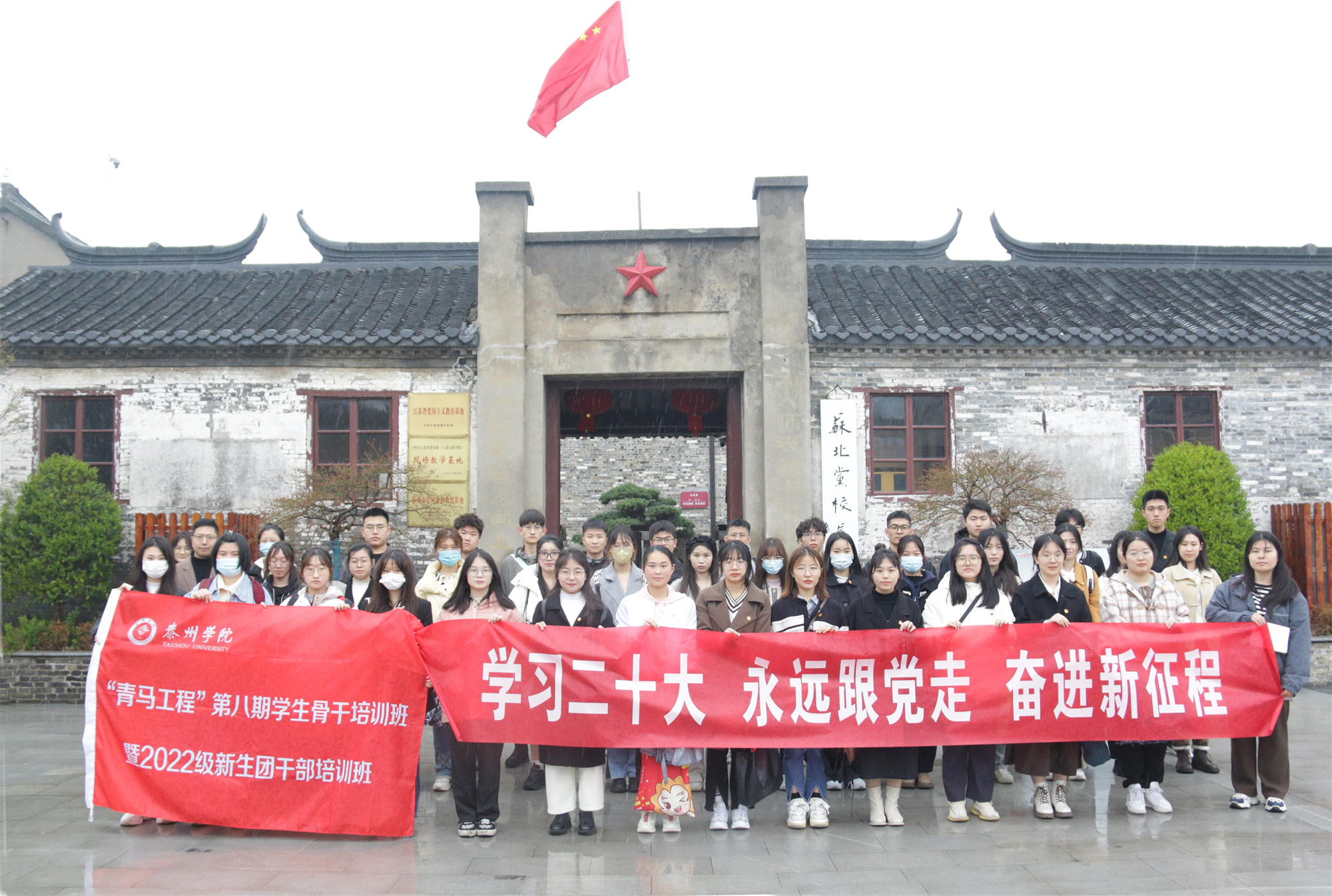3月22日下午,米兰官网“青马工程”第八期学生骨干培训班暨2022级新生团干部培训班学员赴海陵区苏陈镇苏北党校旧址,学思践悟党的二十大精神。