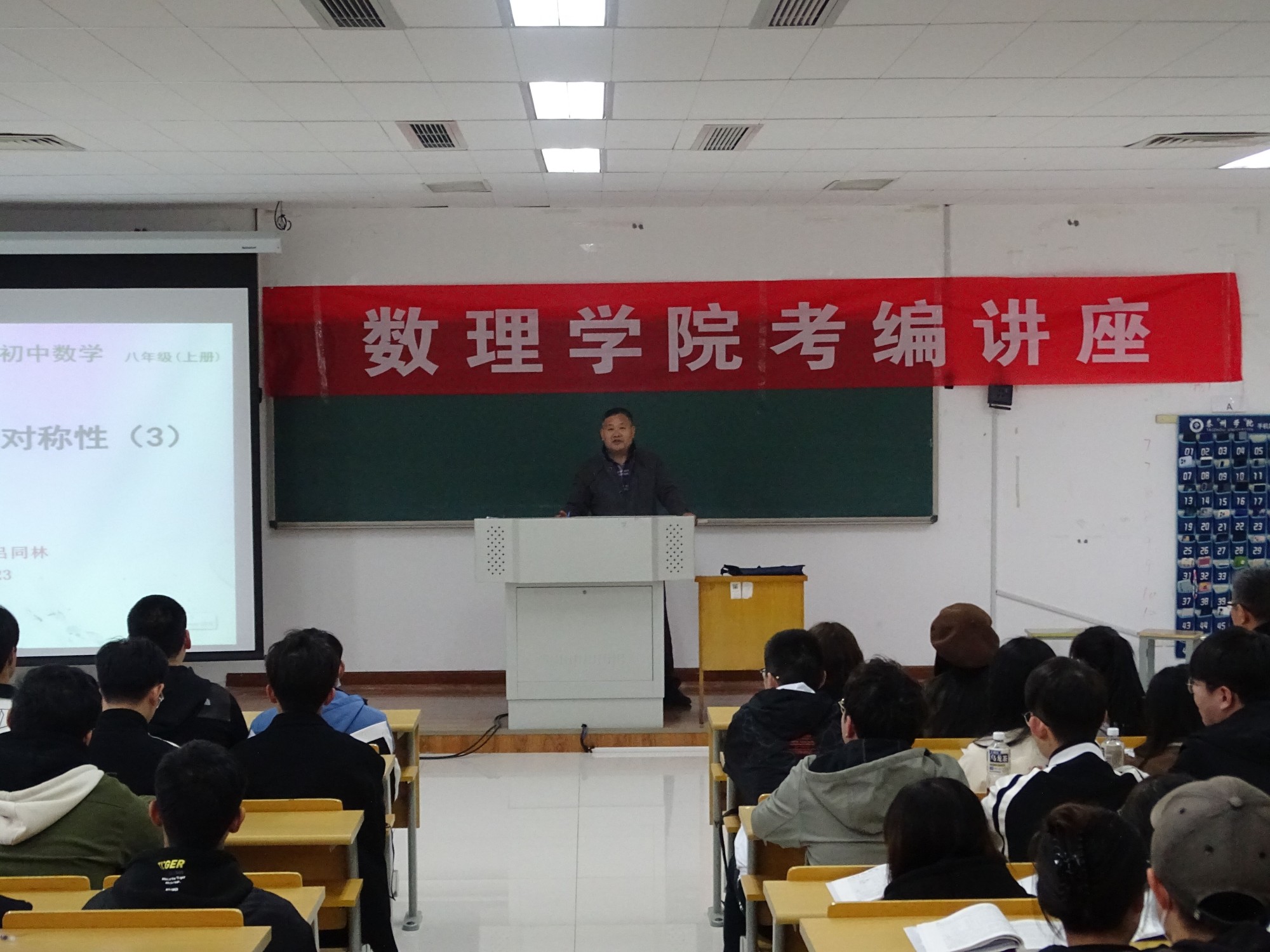 为帮助同学们深入了解教师编制考试面试环节的相关内容和要求,进一步明确备考方向,全面提升师范生课堂教学能力,数理学院关工委于3月23日下午在教学楼A2307举办考编指导讲座。本次讲座由数理学院刘来山老师主持,邀请省泰中附中教授级中学高级教师吕同林主讲,数理学院数学与应用数学专业2019级及2020级同学参加了讲座。