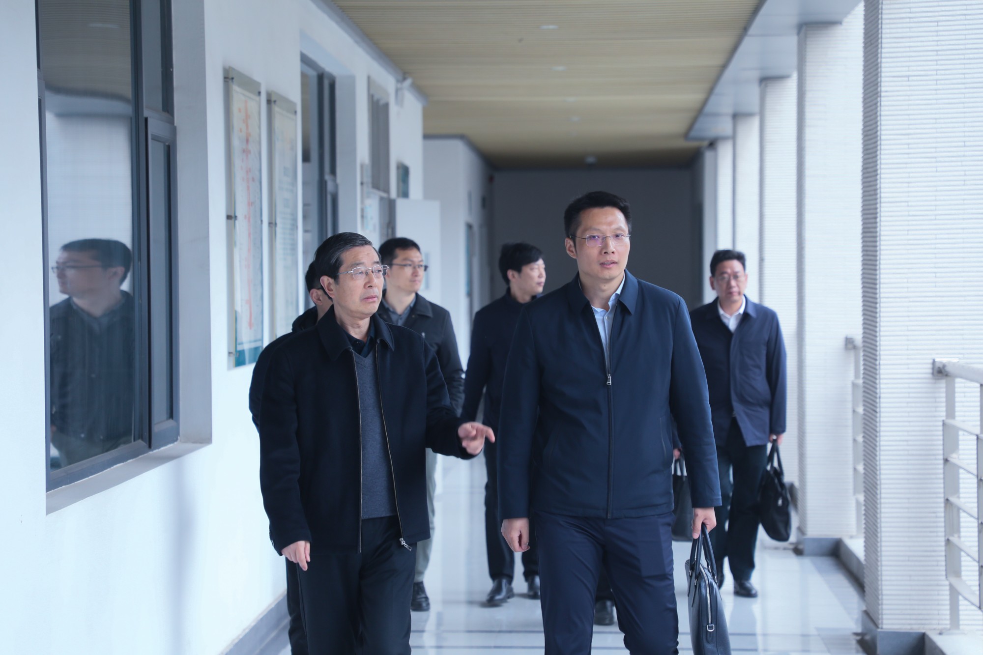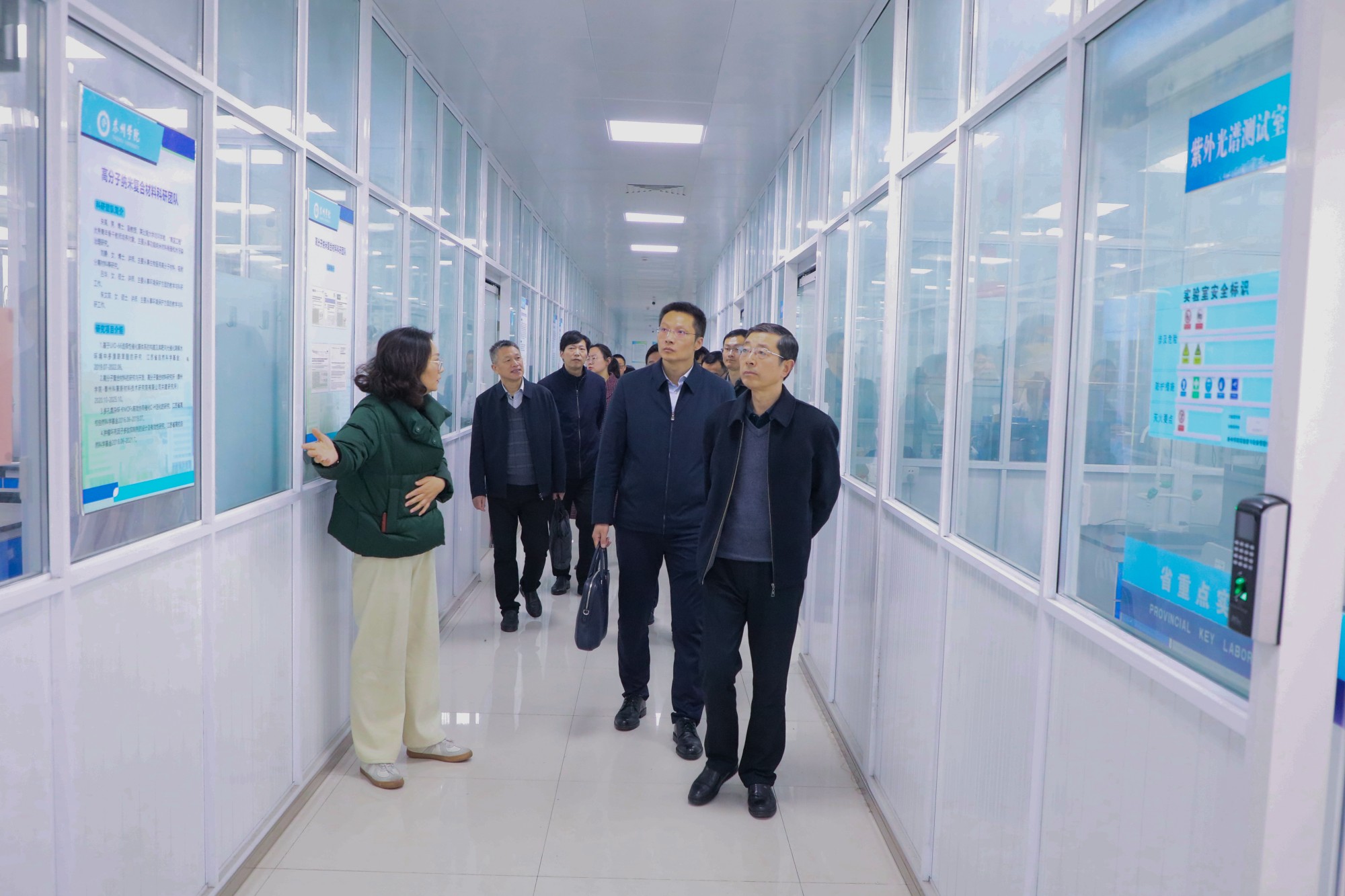会前,邓友祥带队参观了医药与化学化工学院实验室、学校图书馆以及二期工程。