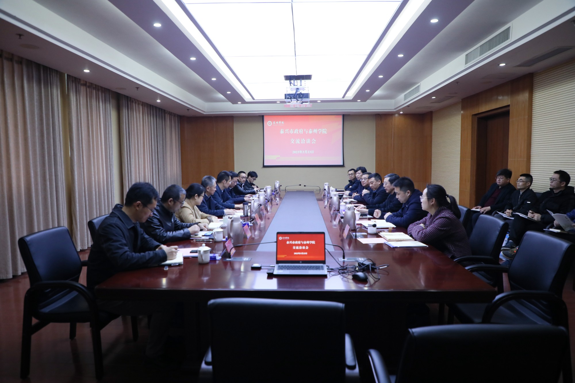 3月23日下午,泰兴市政府党组成员、科技镇长团团长耿巍,泰兴市委市级机关工委书记、泰兴市委人才办主任黄云峰,泰兴市经济开发区党工委副书记、纪工委书记唐红兵及省第十五批科技镇长团成员一行9人来米兰官网调研交流。校党委副书记、校长季赛,党委副书记邓友祥,学校相关职能部门负责人及医药与化学化工学院负责人和部分教师代表参加交流会。