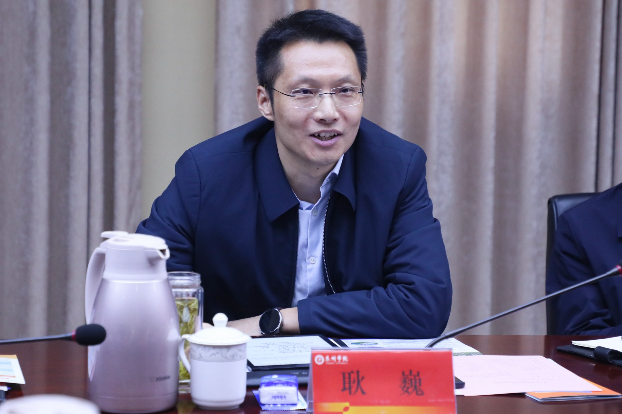季赛代表学校对耿巍一行表示欢迎,并从学校历史、办学理念、专业学科设置以及发展规划等方面介绍学校整体情况。耿巍介绍了泰兴“三区三园”的产业方向及典型企业,重点介绍了泰兴市1个千亿级、2个五百亿级和3个百亿级的产业布局。医药与化学化工学院副院长牟伊介绍了学院专业设置、师资力量、实验条件、学科建设等方面的概况,重点介绍了学院在服务地方产业发展取得的成绩。唐红兵详细介绍了泰兴经济开发区的发展历史、现有规模以及后续发展规划,重点介绍了园区在发展精细化工和化工新材料方面的布局。黄云峰介绍了泰兴的人才招引政策以及面临的问题,并结合泰兴经开区的产业特色介绍了泰兴市建立相关产业学院的初步构想。