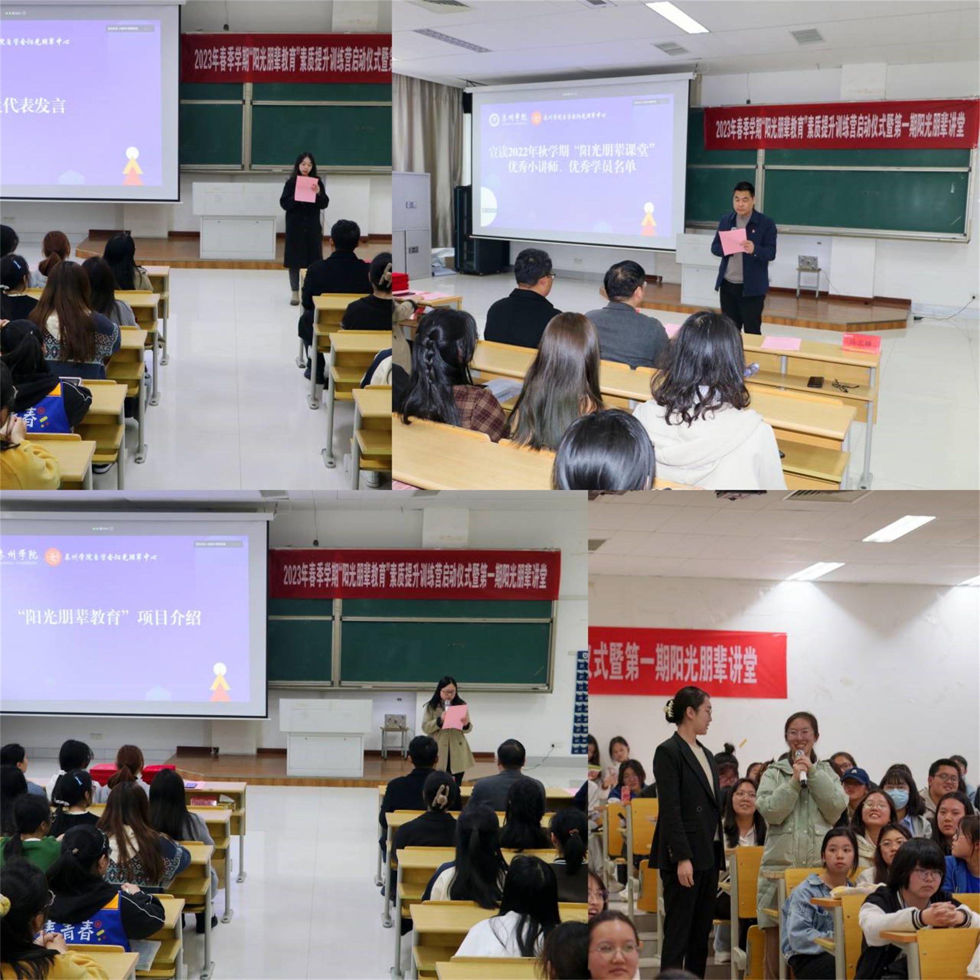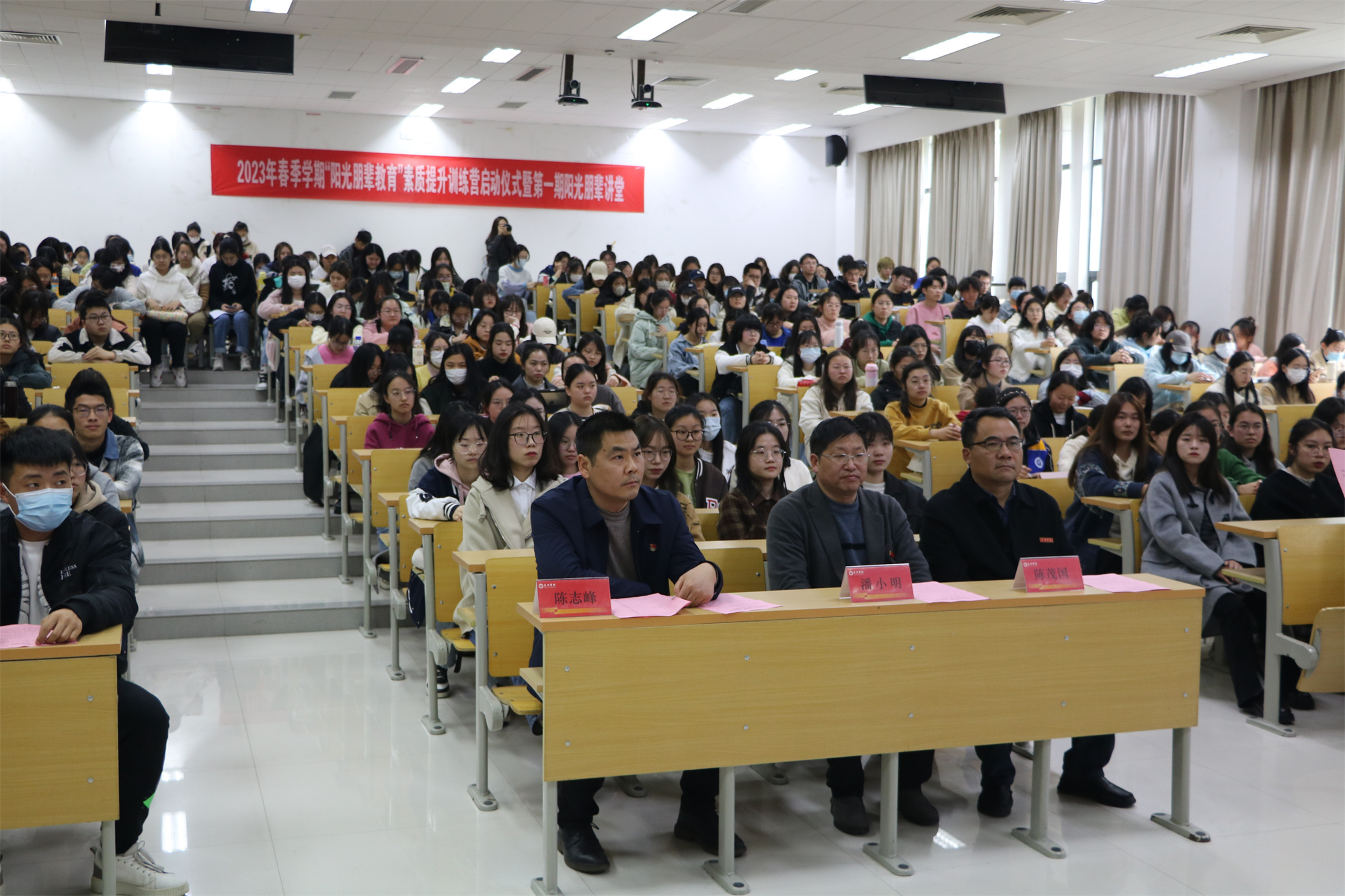 3月29日下午,学生工作处在教学楼A2108举行“阳光朋辈教育”素质提升训练营暨第一期阳光朋辈讲堂启动仪式。教务处处长潘小明,学工处处长陈茂国、副处长陈志峰、学生事务管理科科长官小燕,“阳光朋辈课堂”小讲师、学员代表和各二级学院学生代表近350人参加了活动。