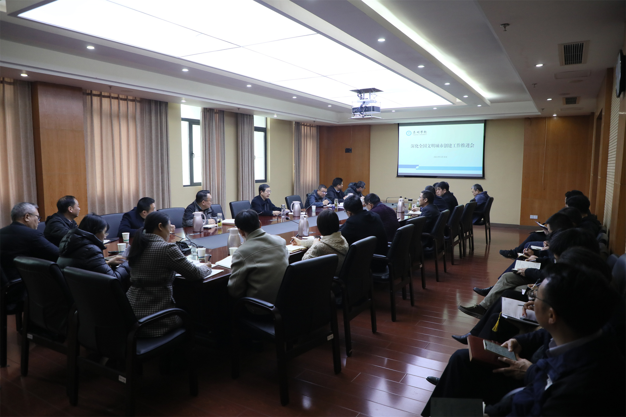 3月30日上午,米兰官网召开深化全国文明城市创建工作推进会。党委副书记邓友祥出席会议并讲话,党委常委、宣传部部长魏小星主持会议,相关部门和二级学院负责人参加会议。
